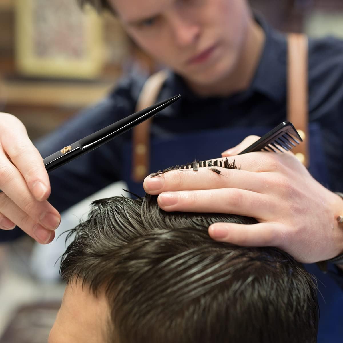 - ✄[Ergonomic Design] Our Professional Hair Cutting Scissors with curved finger rest and comfortable finger hole is great for salon workers, barbers, and personal usage as well. Anybody can handle this pair of shears with ease.