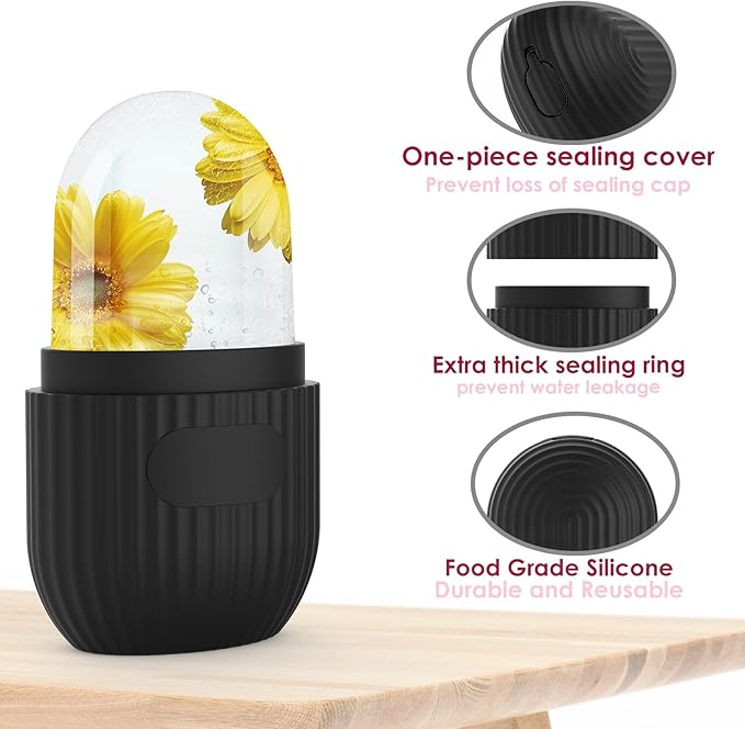 GeeRic Ice Face Roller, Silicone Ice Facial Rollers, Cube Face Contour for Eyes Neck, Beauty Facial Massage Roller Remove Dark Circle Pore Shrink Face Roller Skin Care Tools (Black)