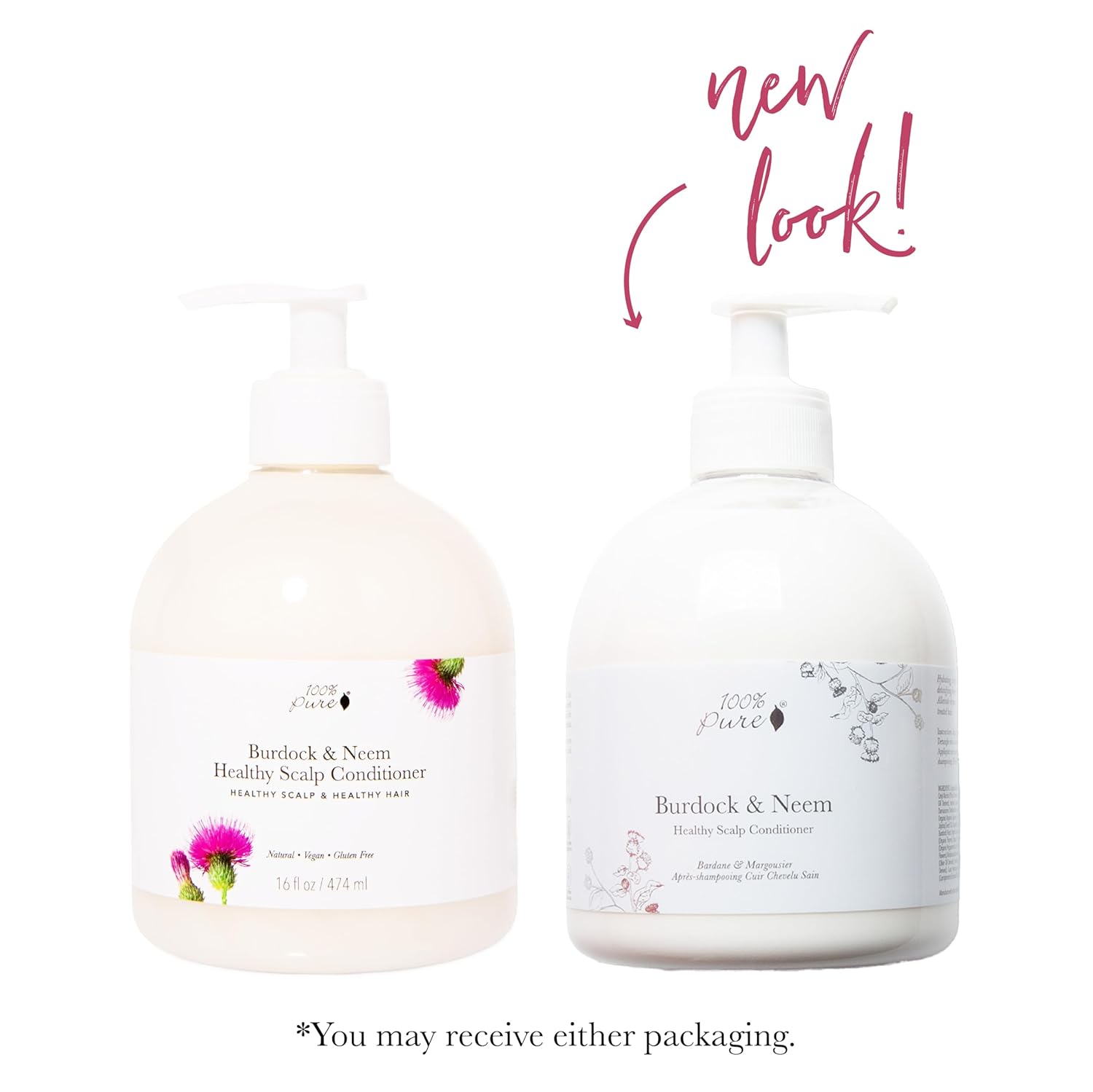 100% PURE Healthy Scalp Conditioner Purifying Burdock & Neem for Dry Damaged Hair Replenishing Itchy Flaky Scalp Hydration for Women & Men - 16 Fl Oz