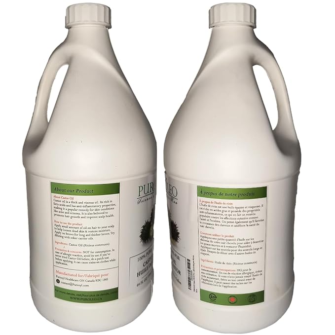 PUROLEO Castor Oil 64 Fl Oz/1900 ML (Packed In Canada) 100% Pure and Natural Hair, Lash, Beard, Eyelashes & Eyebrow Oil Black castor oil for brow lashes, Make eyelash serum, hair serum for dry hair