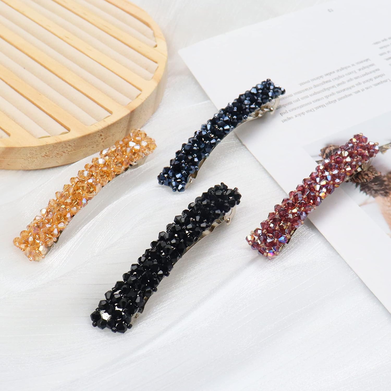 Elegant Hair Barrettes for Women B.PHNE Rhinestones Hair Clips Vintage French Style Hairclips Decor 4 Pack