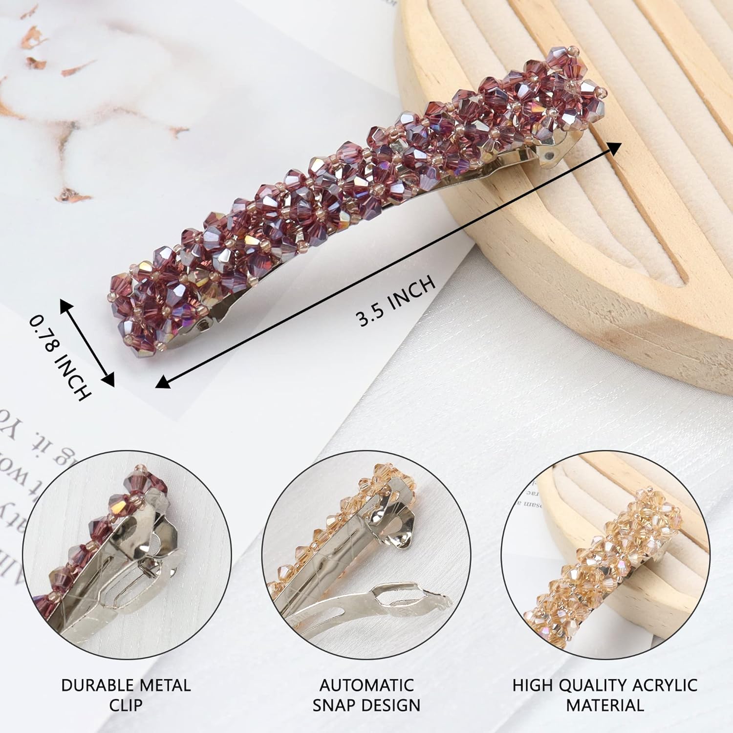 - 👸🏼【For Many Hairstyles】Rhinestone barrettes If you have long hair, you can clip a ponytail or half ponytail with these clips, these clips will make you look very gentle and beautiful.If you have short hair, these clips can be clipped on the top or side of your head, they make you looks super cute.