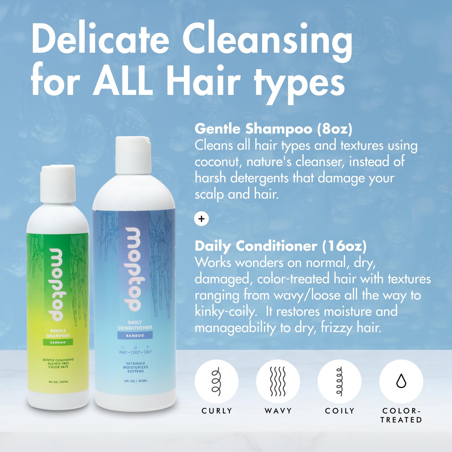 - CURLY HAIR CONDITIONER: moptop’s curly and wavy hair conditioner is gentle for daily use and helps tame frizz while rehydrating your hair from root to tip. Our hydrating conditioner has you covered whether you need straight, wavy, fine, coily, or curly hair care.