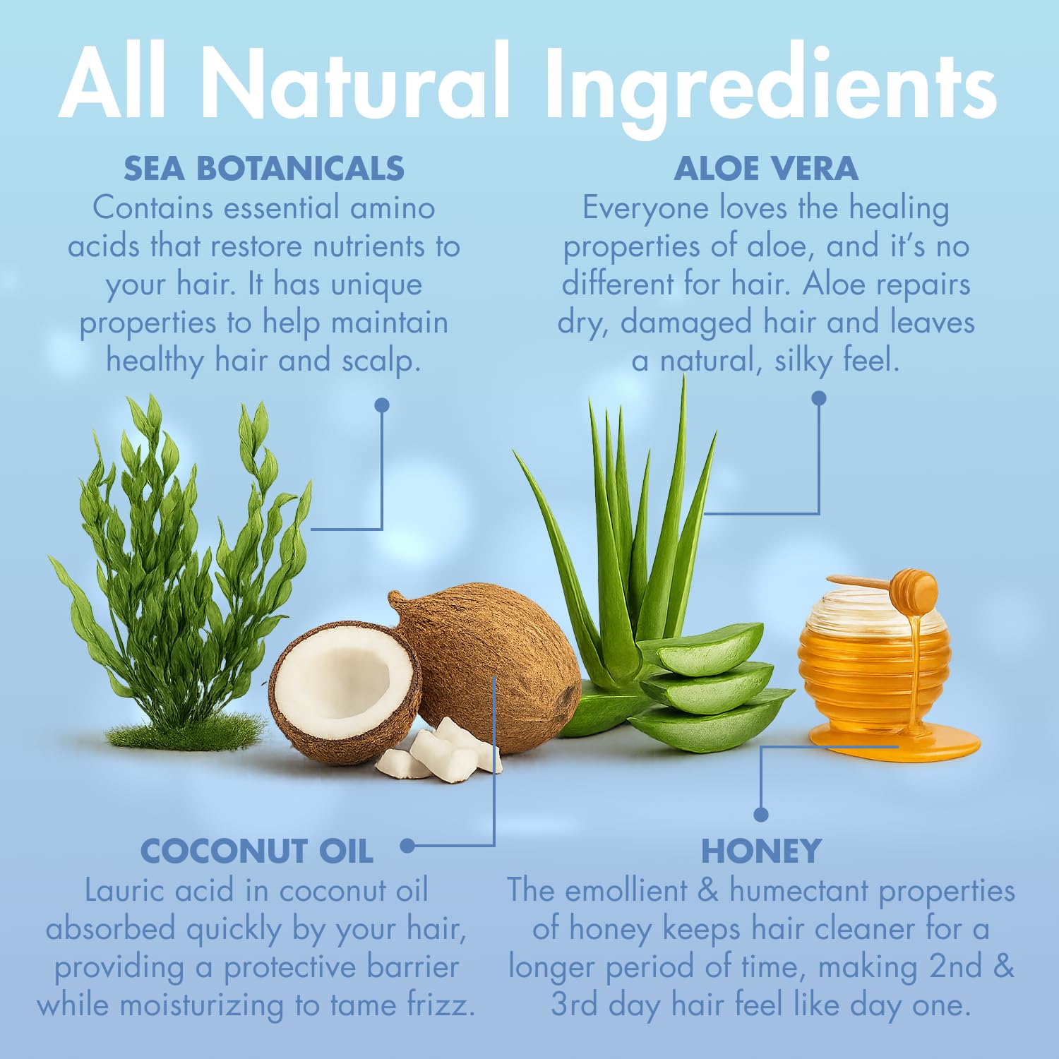- CLEAN, JUNK-FREE FORMULA: Our chemical free hair care products are made without parabens, sulfates, silicones, phthalates, SLS, or dyes. Made with natural botanicals like honey, aloe and sea botanical, they keep your hair and scalp healthier and happier.