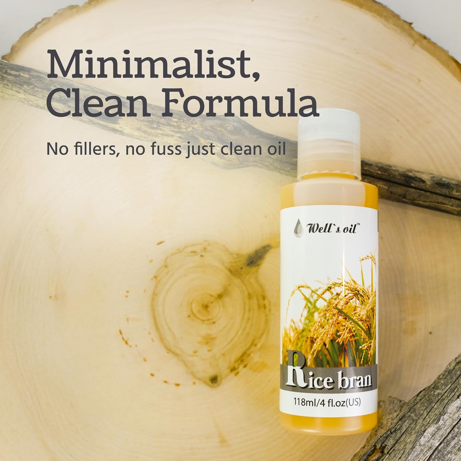 Well's Oil Rice Bran Oil | 100% Pure Natural Carrier Oil | Refined, Cold Pressed | For Body, Skin & Hair (8 fl oz / 237 ml)