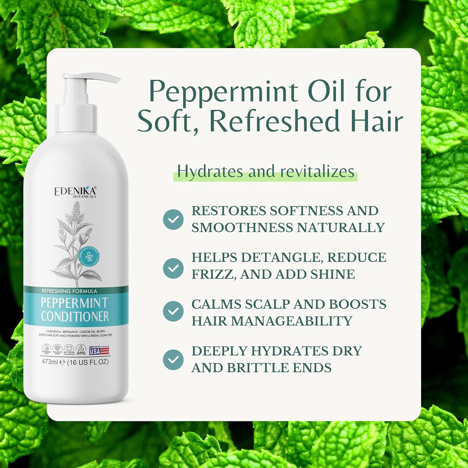 - Eco-Friendly & Made in the USA – Formulated with sustainable packaging and made in the USA, Edenika Botanicals Peppermint Conditioner provides a luxurious hair care experience that supports both your hair’s health and the environment.