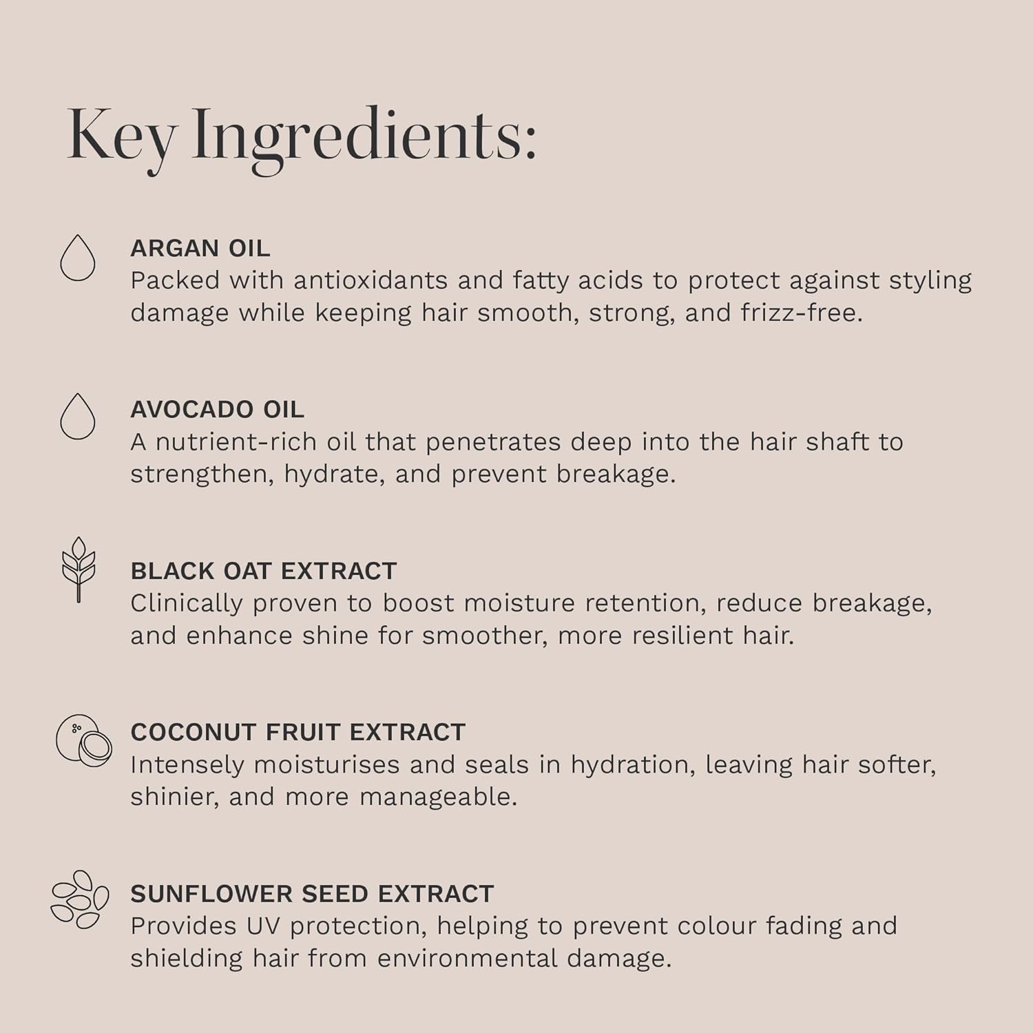 - ADD STRENGTH & SHINE: This intensive treatment is enriched with black oat extract and coconut oil, which penetrates the hair shaft to moisturise and strengthen.