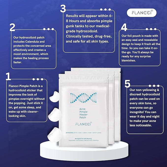 - ✅ Flancci Pimple Patch is a hydrocolloid sticker that improves the look of pimples overnight without the popping. Just stick it on, get some sleep, and wake up with clearer-looking skin.