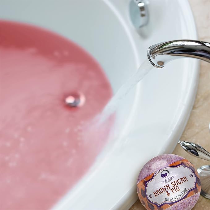 Nature's Beauty Brown Sugar & Fig Bath Bomb Multi-Pack - Natural Hand Crafted, Non-Staining, Luxury Fizzy Spa Bomb, Moisturize Dry Skin, Made w/Orange Extract + Coconut Oil, 4.6 oz (4 Pack)