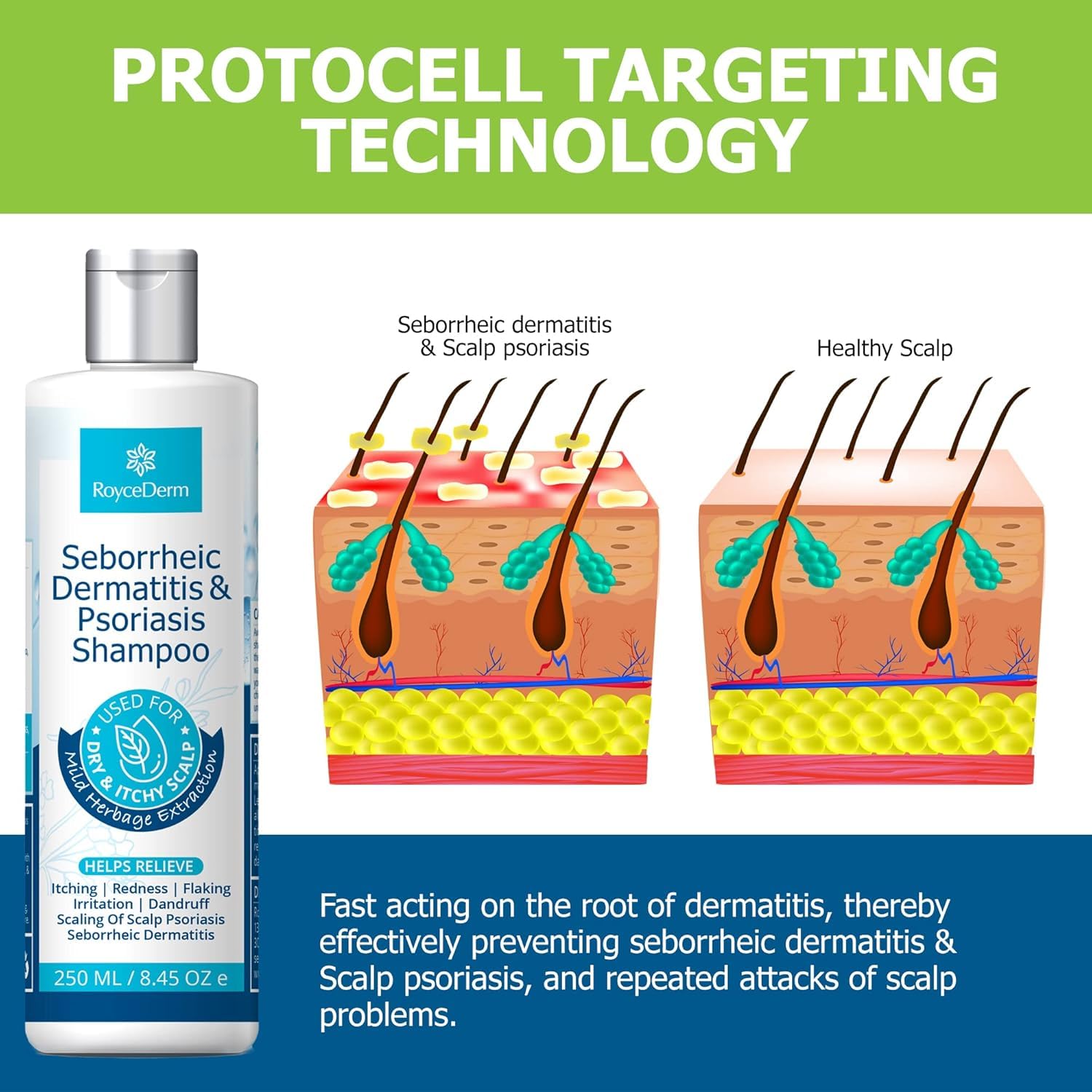 Roycederm Psoriasis Shampoo, Seborrheic Dermatitis Shampoo, Folliculitis Shampoo, Dandruff Shampoo, Scalp Psoriasis & Seborrheic Dermatitis Treatment, Dry Itchy Scalp Treatment
