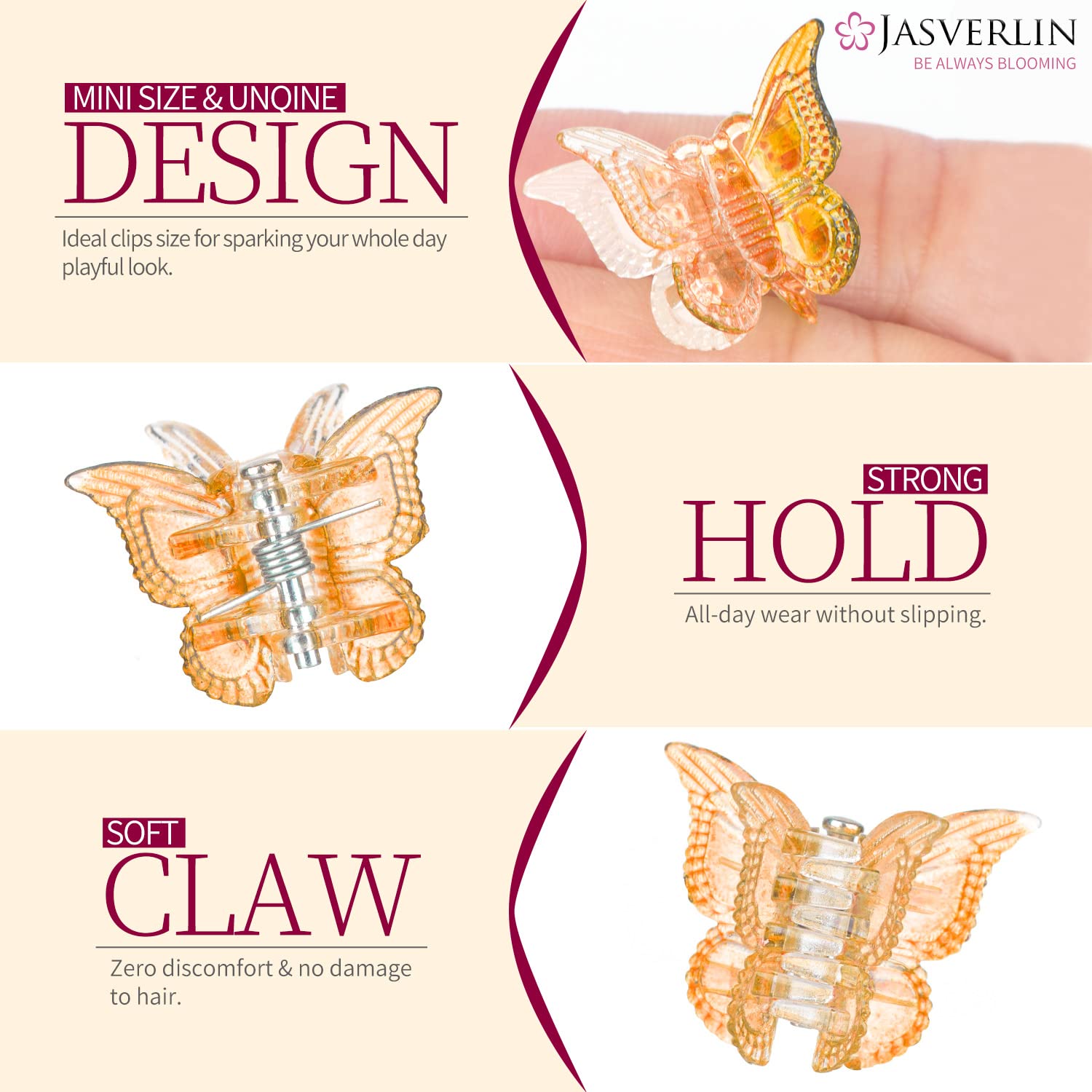 - Stunning Gradient Hues: JASVERLIN offers ten radiant, gradient colors in our butterfly hairclip set, with five clips per color. These assorted colors cater to all hair shades, inspiring a fresh hairstyle, outfit, and makeup look daily