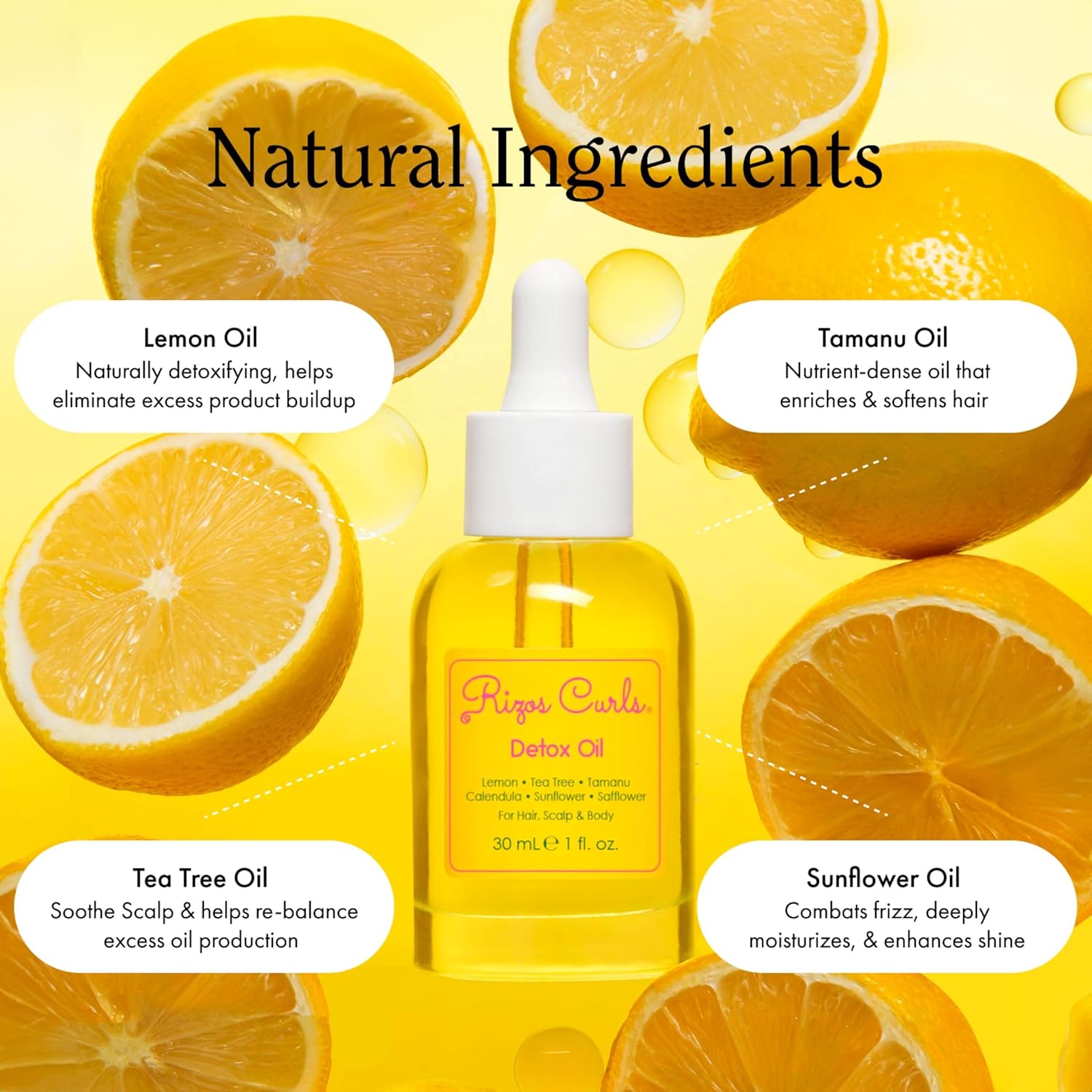 Rizos Curls Detox Oil, Detox & Balance Scalp to Reduce Buildup & Soothe Irritation, Support Hair Growth & Health with Tea Tree & Lemon Oil, For All Hair Types 1a - 4c, 1 oz