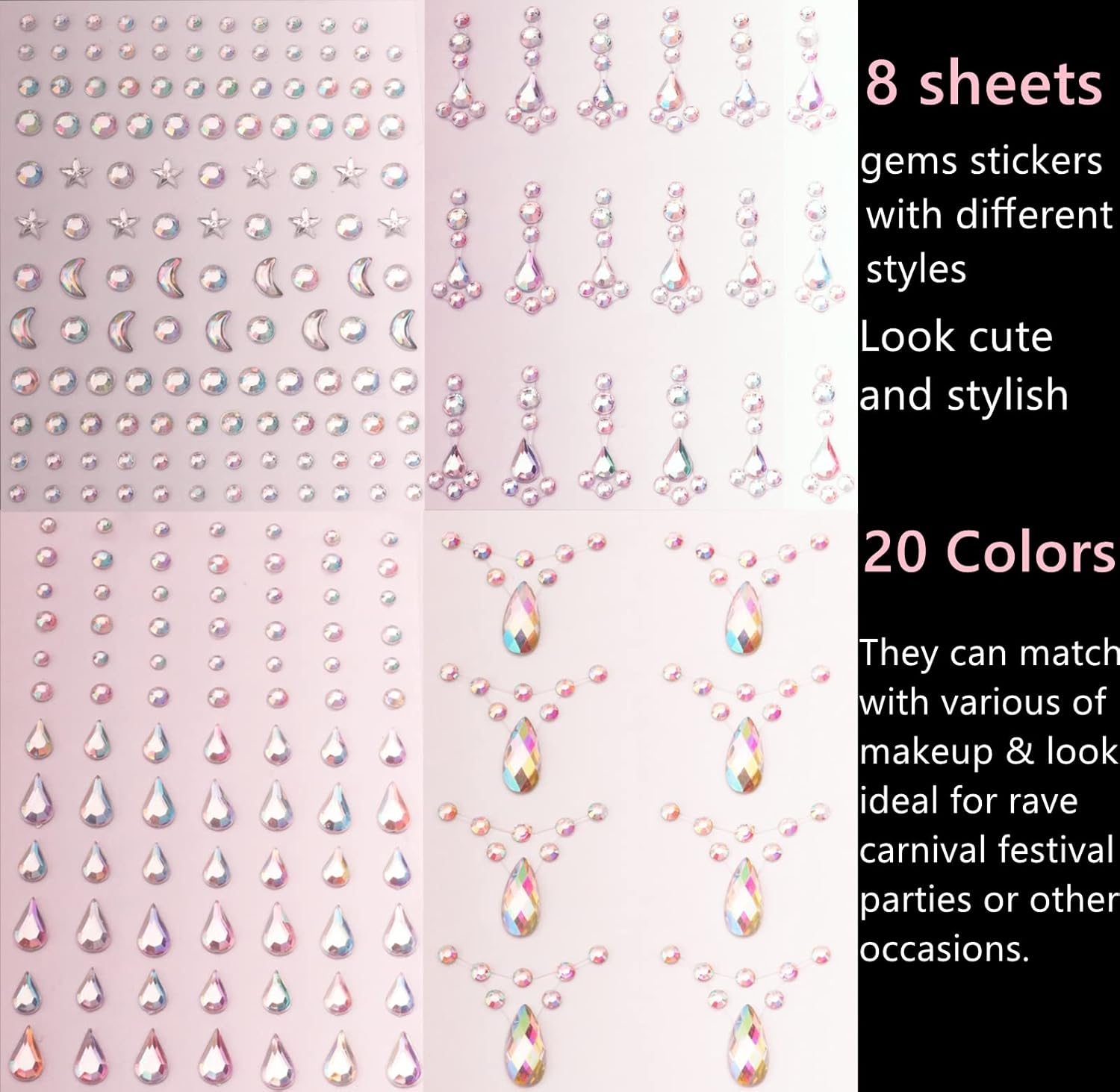 - ❤【Reusable and Reliable】These face gems can be used for many times and they are safe and non-toxic. To store, please return the stickers on the body jewel to the backing sheet after using. Once the glue has been dried, you can clean the back with an alcohol swab and apply any non-toxic glue such as eyelash glue, which can enhance the stickiness.