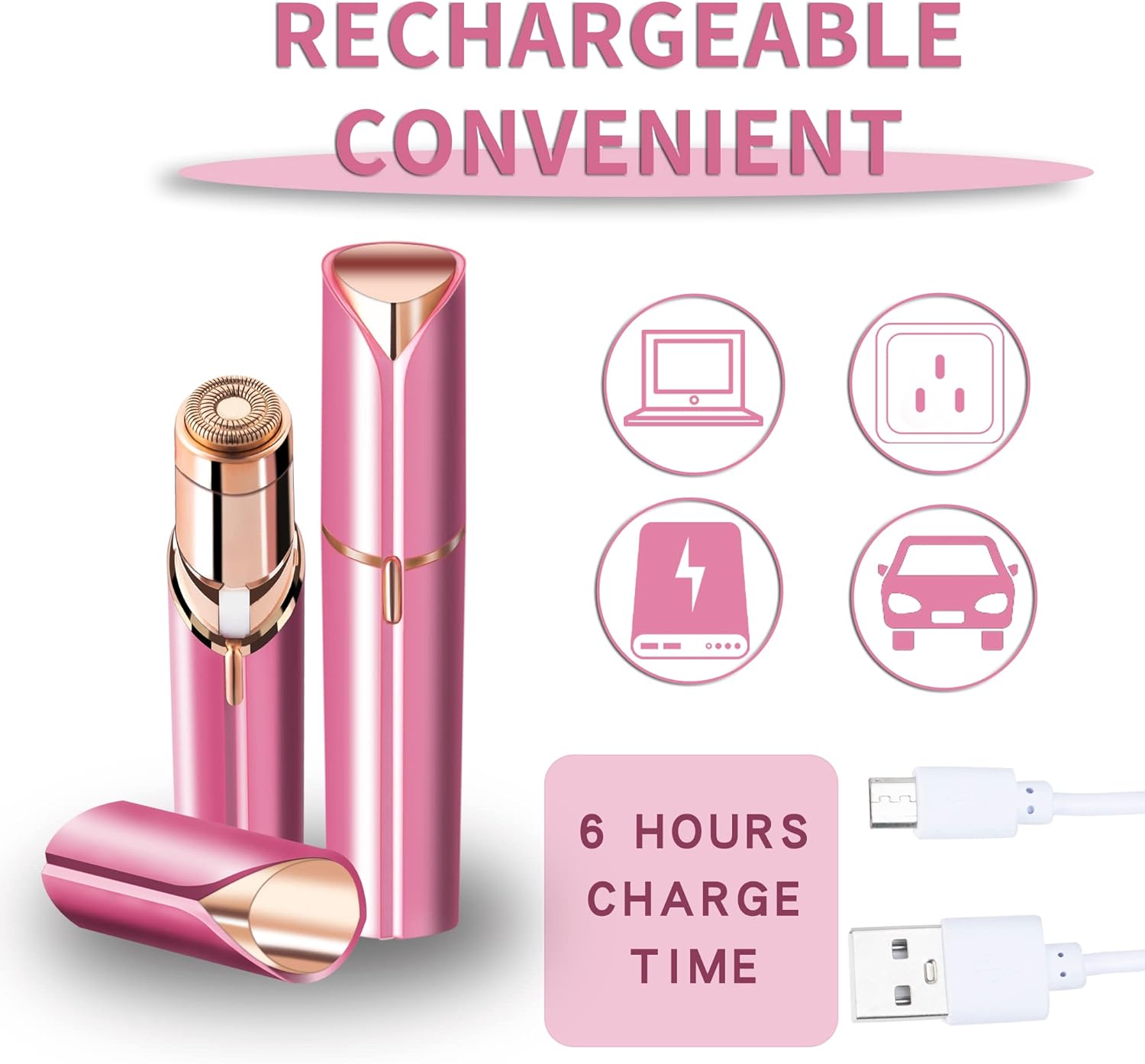 Facial Hair Remover for Women- as Seen on TV Painless Face Shaver -Mini Hair Remover, Electric Razor Shaver Portable Bikini Epilator for Lips, Chin, Armpit, Peach Fuzz, Fingers, Neck, Cheek (Rose red)