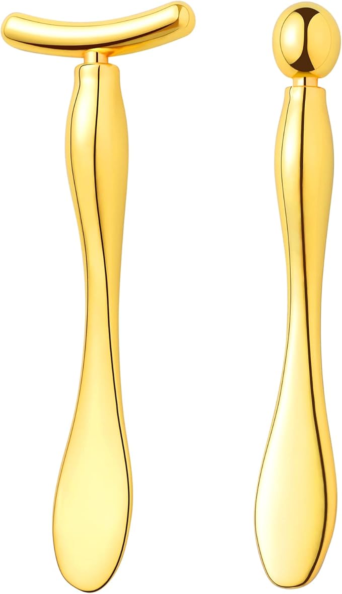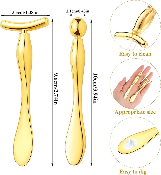 Pimoys 2 Pcs Metal Eye Cream Applicator Face Roller Massager Tool,Eye Massage Wand Stick Girls Women Facial Massager for Reducing Puffiness Wrinkle