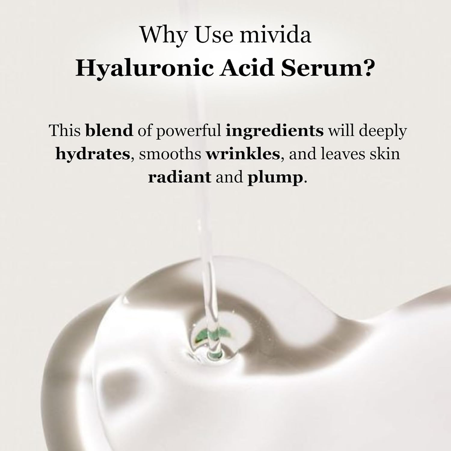 mivida Hyaluronic Acid Serum for Face | Ultimate Hydration & Anti-Aging Facial Serum with CoQ10, Vitamin B, Vitamin C & Chamomile | Soothing, Plumping & Renewing โ For Sensitive Skin, Non-Greasy 1floz