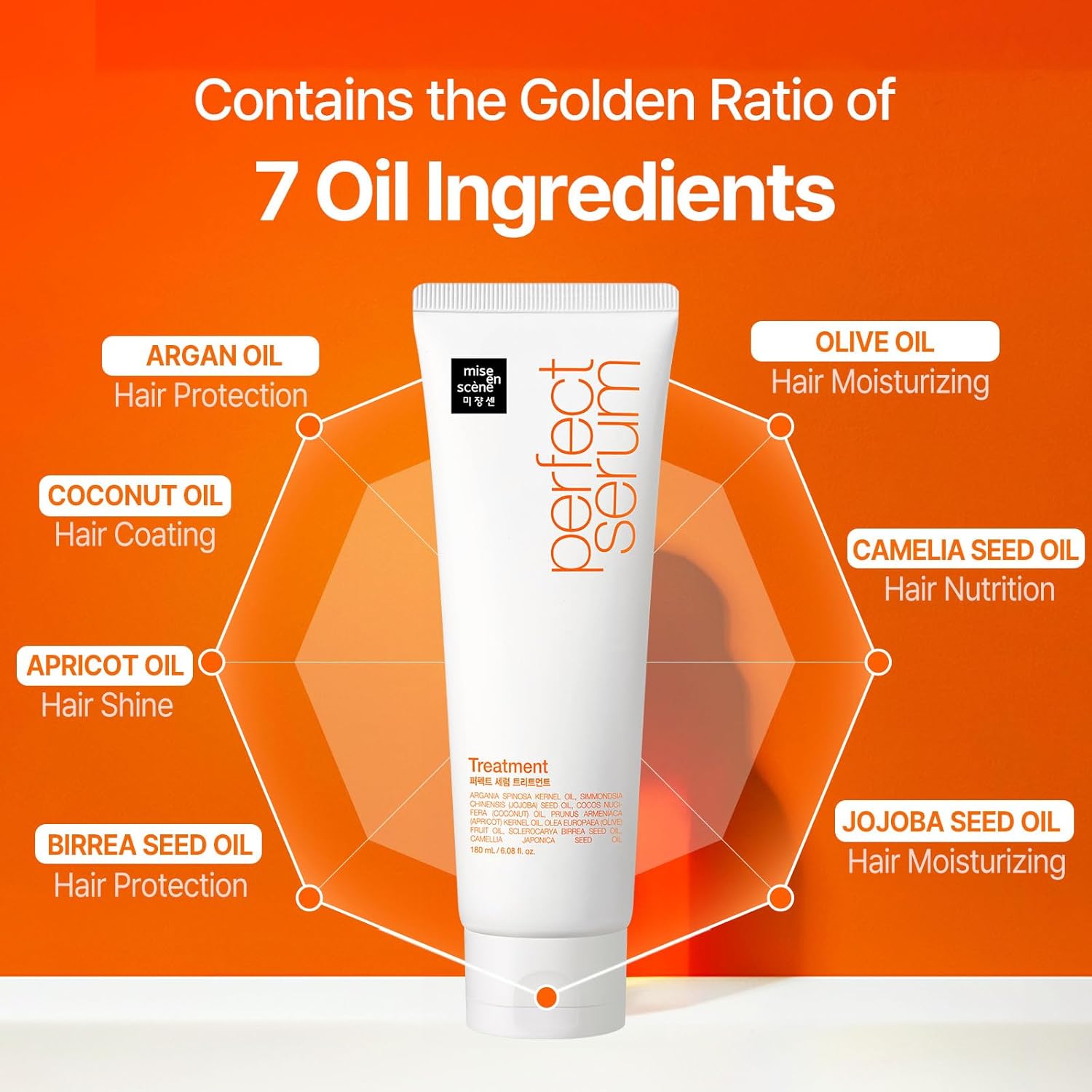 Mise En Scene Perfect Serum Treatment | Korean Hair Mask for Hair Coating Effect, Treatment at Home Care, Wash Off Nutritient conditioner, 6.08 Fl. Oz.(180ml)