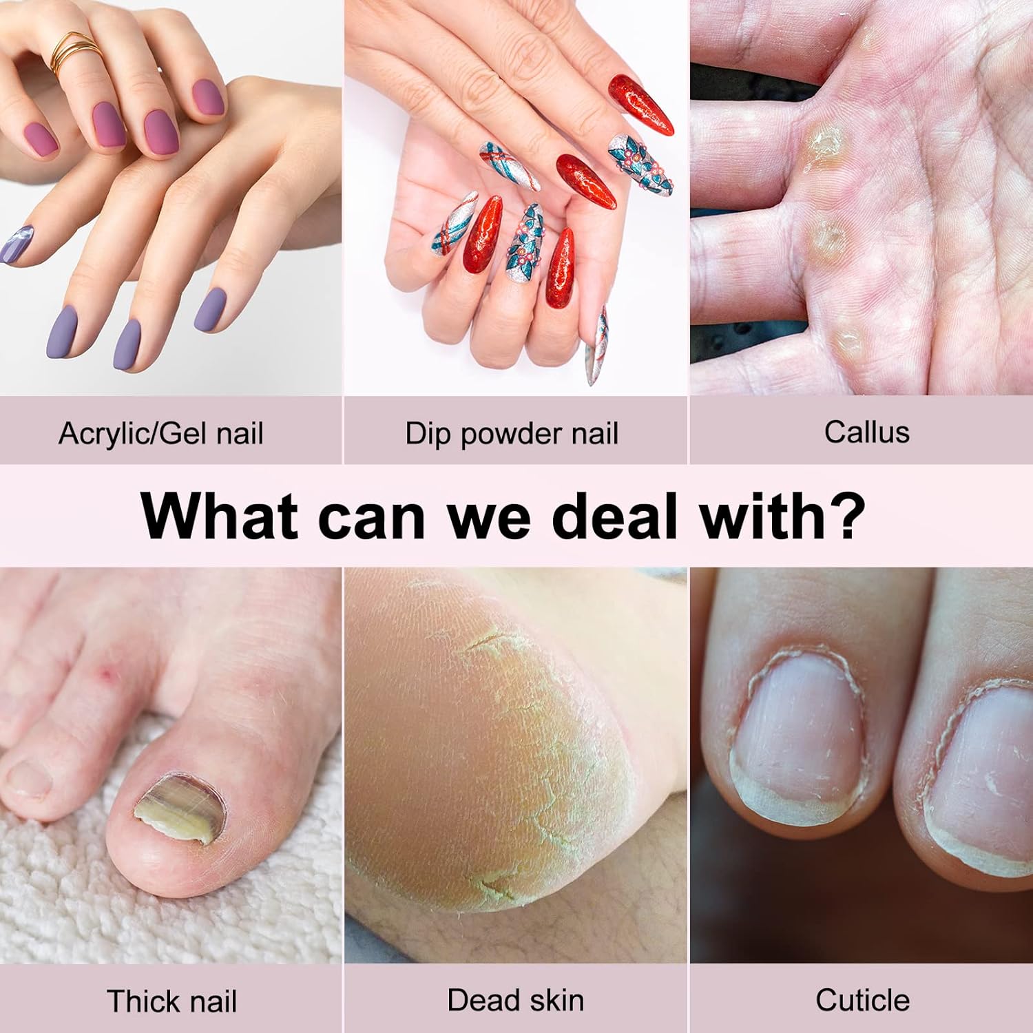 - Multifunctional for Manicure & Pedicure: With adjustable speeds and forward/reverse direction options, this nail drill machine comes with various professional grinder bits, you can customize your various manicure and pedicure routine to your liking