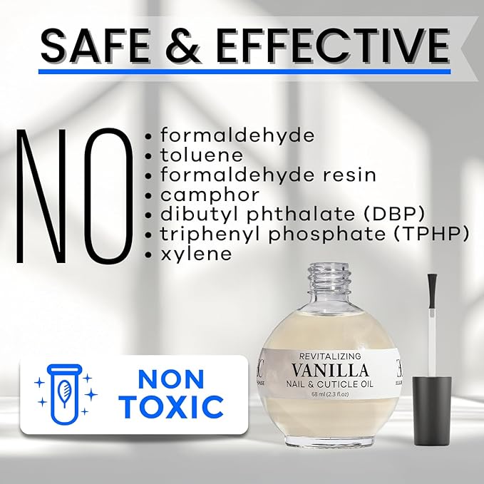 - Clear when applied 2.3 Fl Oz - Cruelty Free, Gluten Free, Non-Toxic, Organic, Vegan Friendly, No formaldehyde, toluene, DBP, TPHP, camphor, xylene