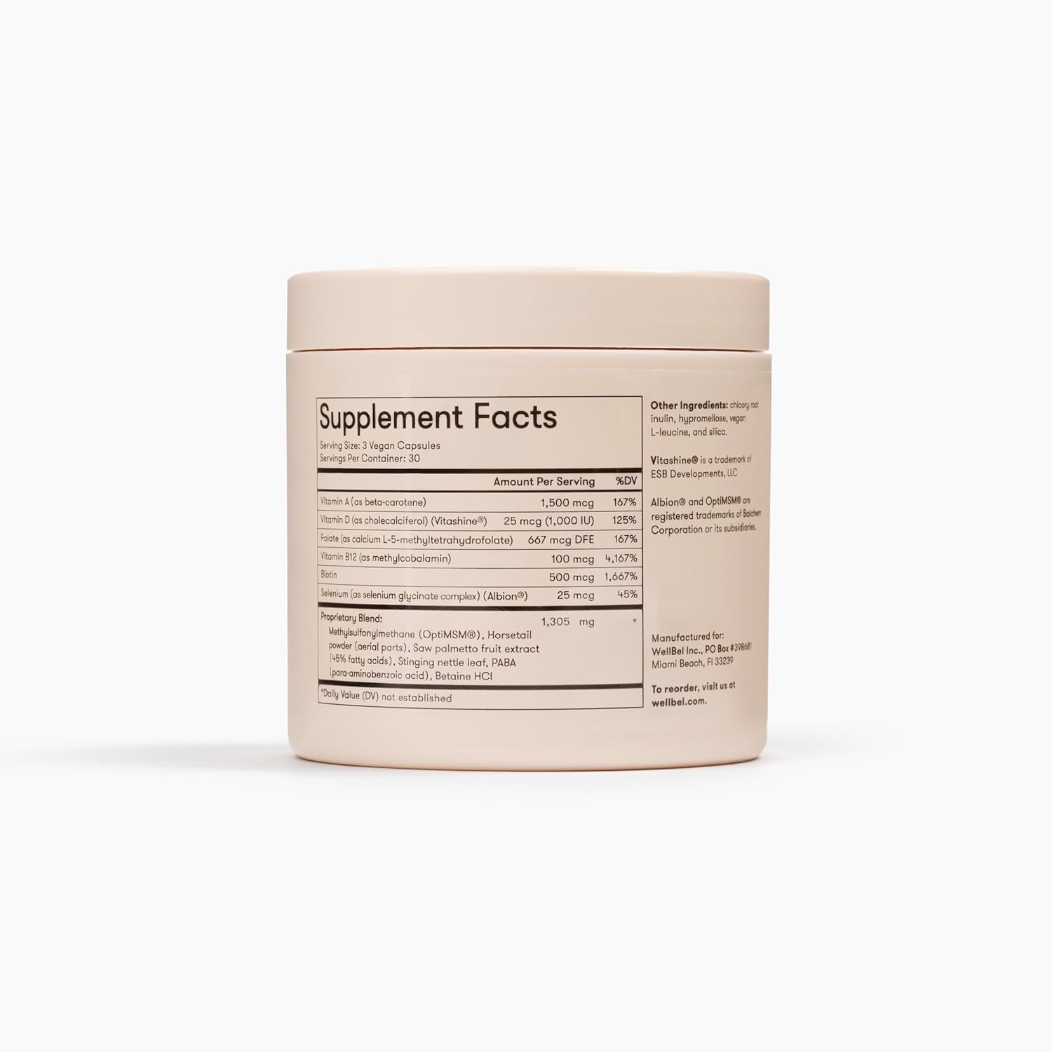 WELLBEL Women Clean Supplement for Hair, Skin, and Nails, Vegan, Gluten Free and Non GMO 90 Count