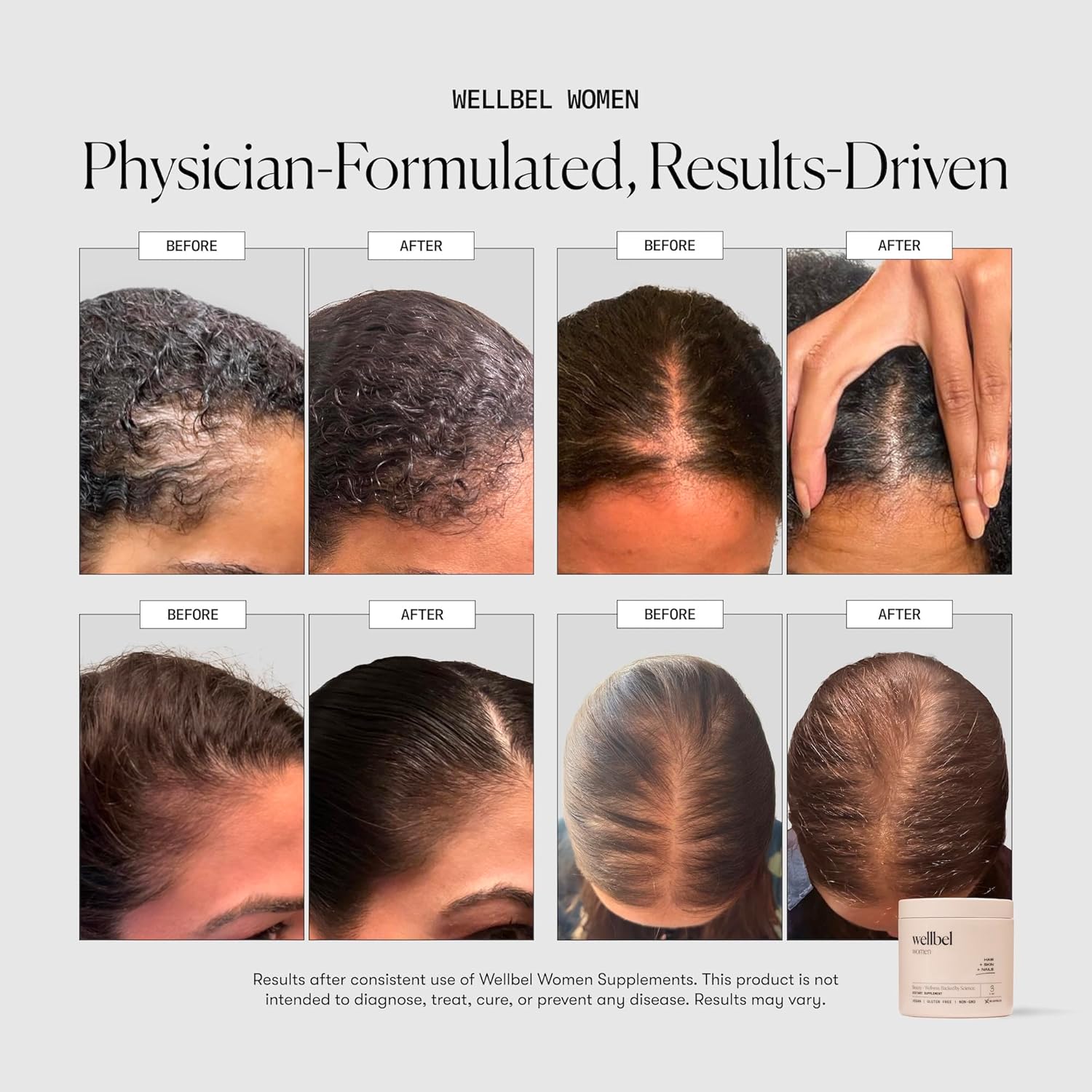 - PHYSICIAN FORMULATED: Wellbel Women nourishes from wthin (trademark), providing the building blocks to increase collagen, elastin, and keratin to promote healthy hair growth.
