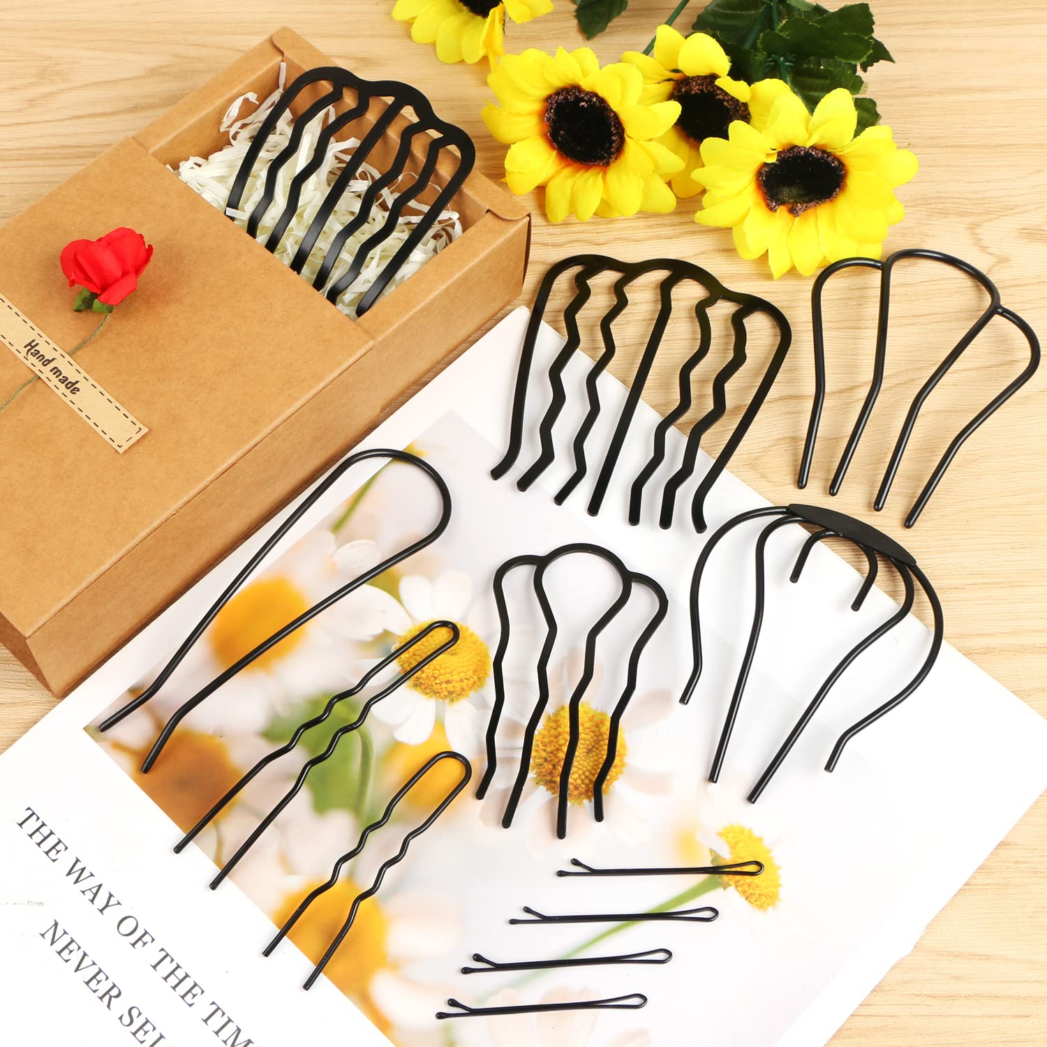 - ❤ Ideal Bun Maker - The different sizes of hair fork clips will meet your different hair styling needs. With this U-shaped teeth hair combs set you could easily creating vintage bun, french twist, hair donut.