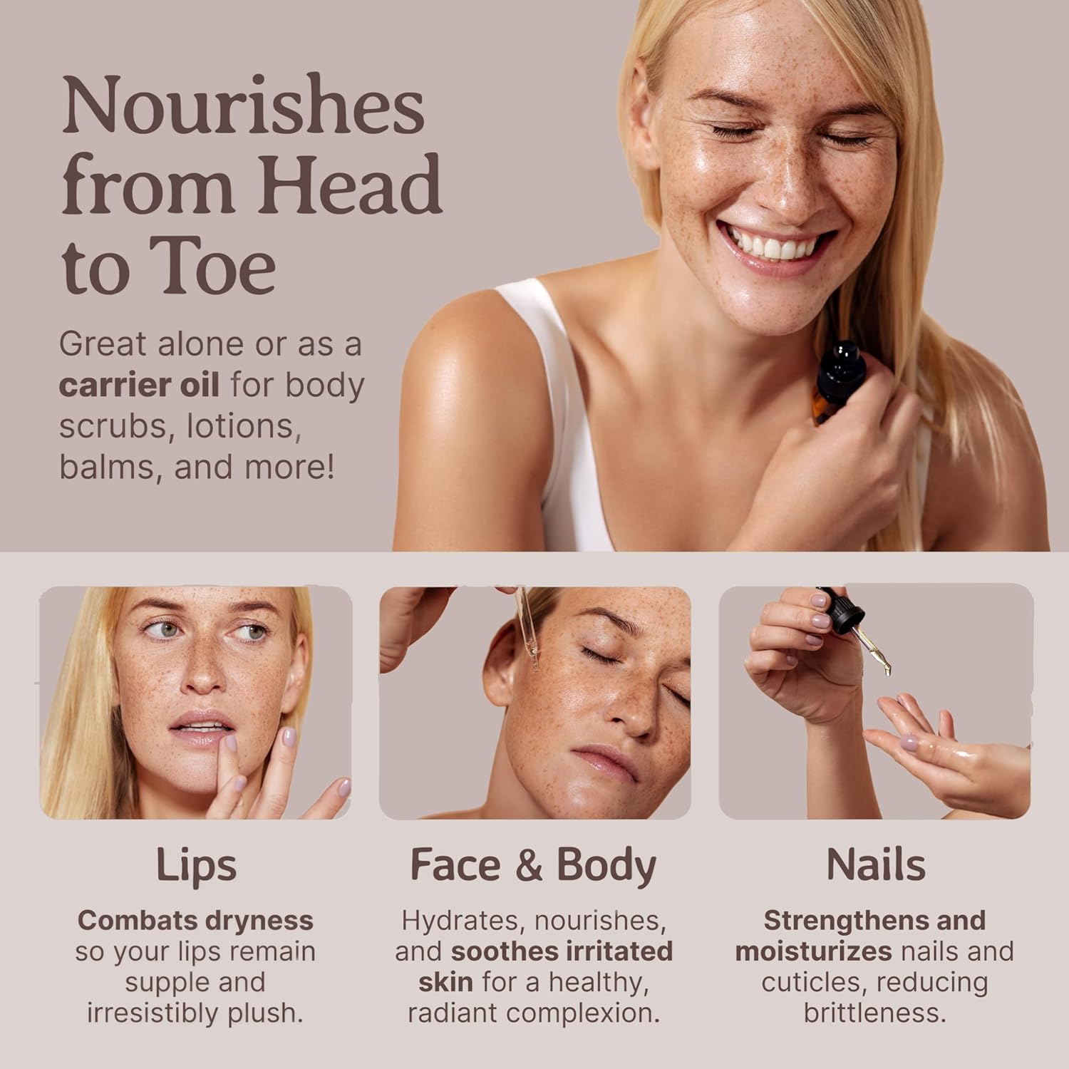 - Special Feature : 100% Money Back Guarantee. Bottled in the USA. Veteran-owned business., 100% Pure. Organic. Unrefined. Cold-pressed. Cruelty-free. Natural., Free from: parabens, hexanes, additives, preservatives., Minimizes Wrinkles. Leaves Skin Smooth and Soft. Prevents Stretch Marks. Promotes Skin Elasticity., Registered Organic with the State of California Dept of Public Health Food & Drug Branch. Reg# 112841. 100% Money Back Guarantee. Bottled in the USA. Veteran-owned business., 100% Pure. Organic. Unrefined. Cold-pressed. Cruelty-free. Natural., Free from: parabens, hexanes, additives, preservatives., Minimizes Wrinkles. Lea… See more