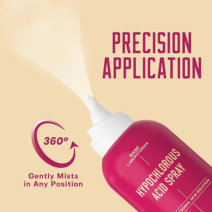 - HYPOCHLOROUS ACID SPRAY FOR FACE & SKIN - WITH UPDATED NOZZLE - You may receive an older bottle with a previous version of the nozzle. If so please message us for a replacement. Helps relieve and heal all types of skin irritations such as redness, face and skin irritations, sensative skin, eczema, acne, tattoo & piercing aftercare spray and more. Hypochlorous spray powered by the hocl molecule.