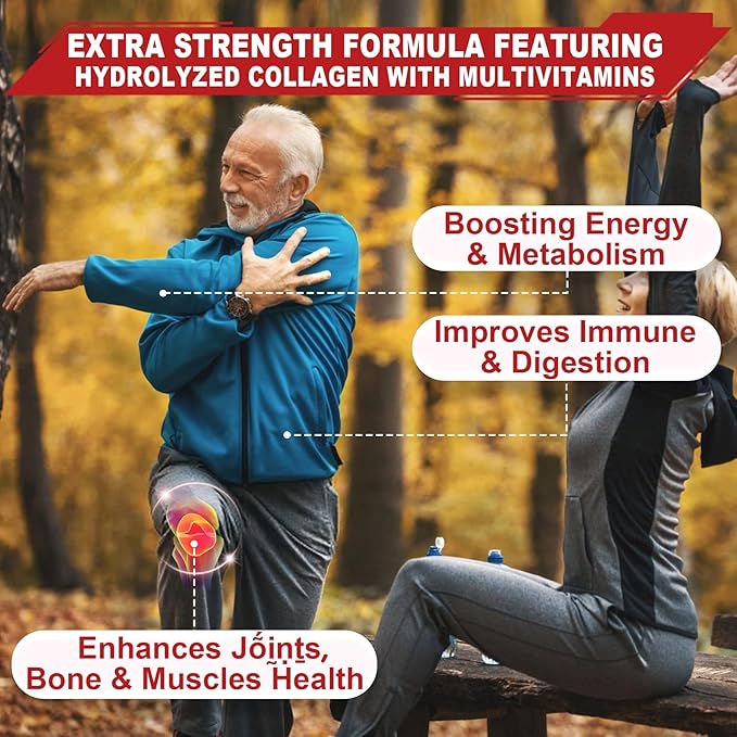 - ๐ช Collagen-Powered Bone, Flexibility & Immune Support โ Collagen is a key structural protein that supports bone dแธn-sแธญty, mobility, and แธแธแน-แนฏแธญแธทแธแธกแธ strength, making it essential for active lifestyles and aging well. Combined with Vitamin D2 and Zinc, these gummies help maintain strong bones and a resilient immune system, while B-complex vitamins support energy metabolism and overall vitality. Sweetened with Stevia and Monk Fruit, they offer a delicious, sugar-free option for daily wellness.