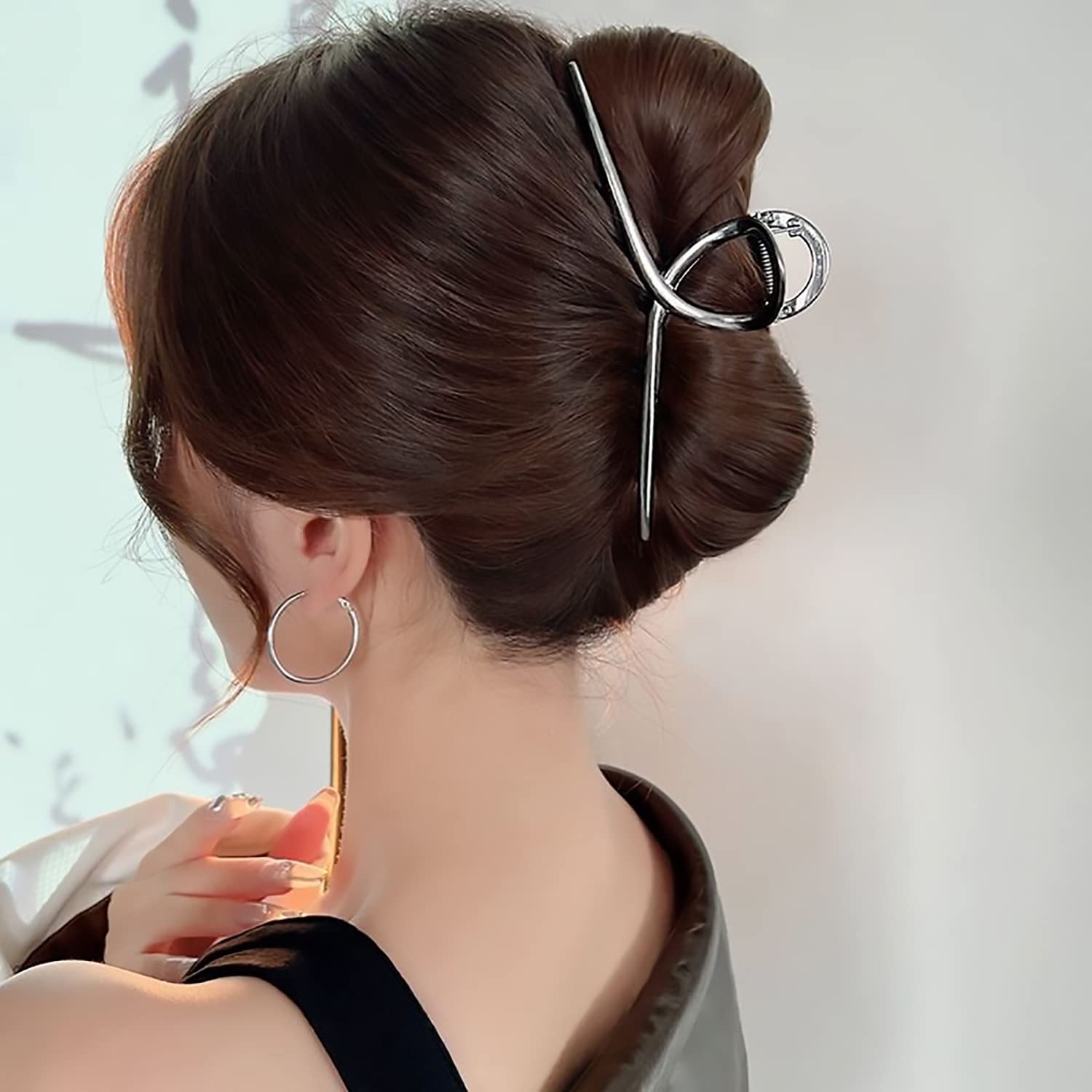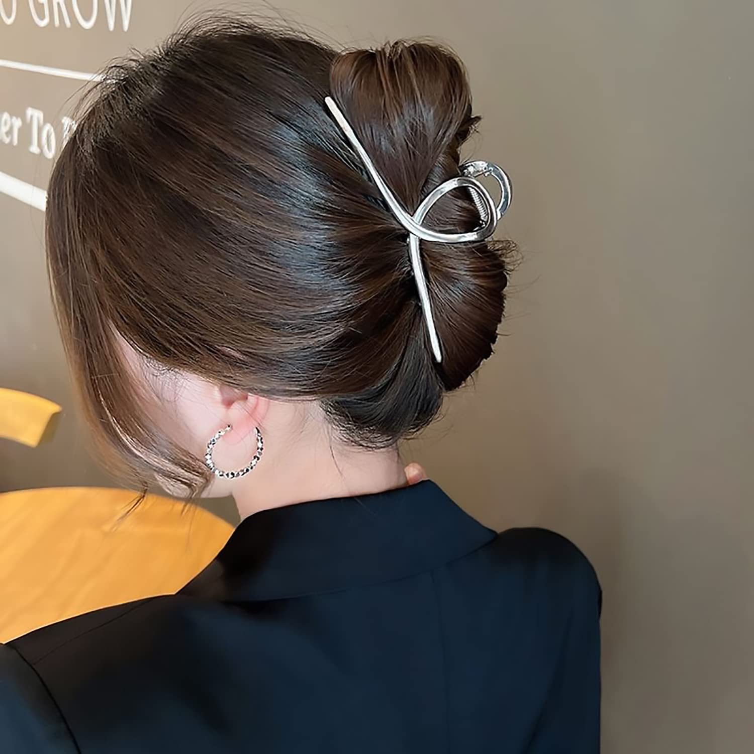 2Pack Glossy Metal Hair Claw Clips No Slip Hair Clamps for Thin and Thick Hair Accessoriesas Gift for Women Girlfriend (2pcs/box,Glossy Rose Gold & Silver)