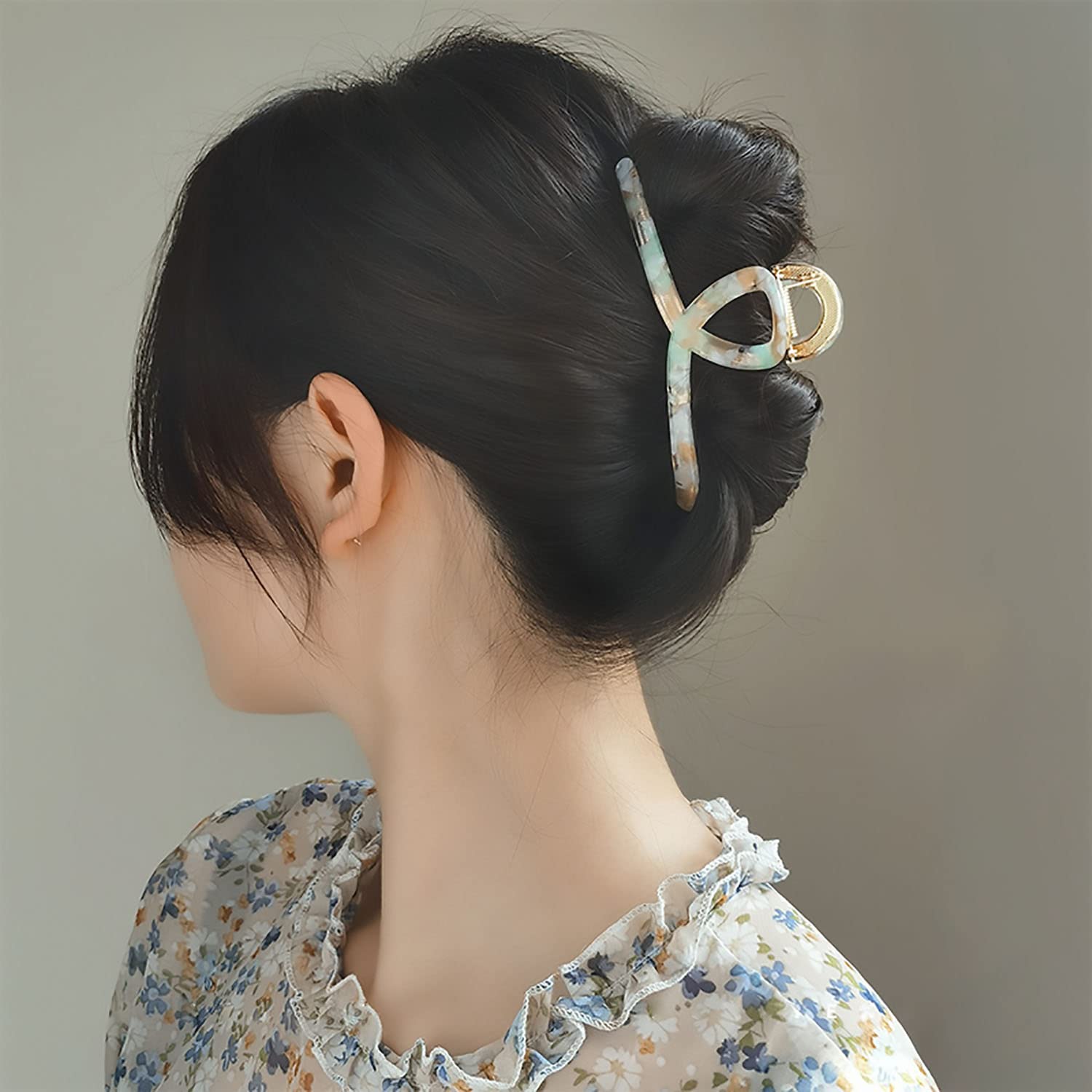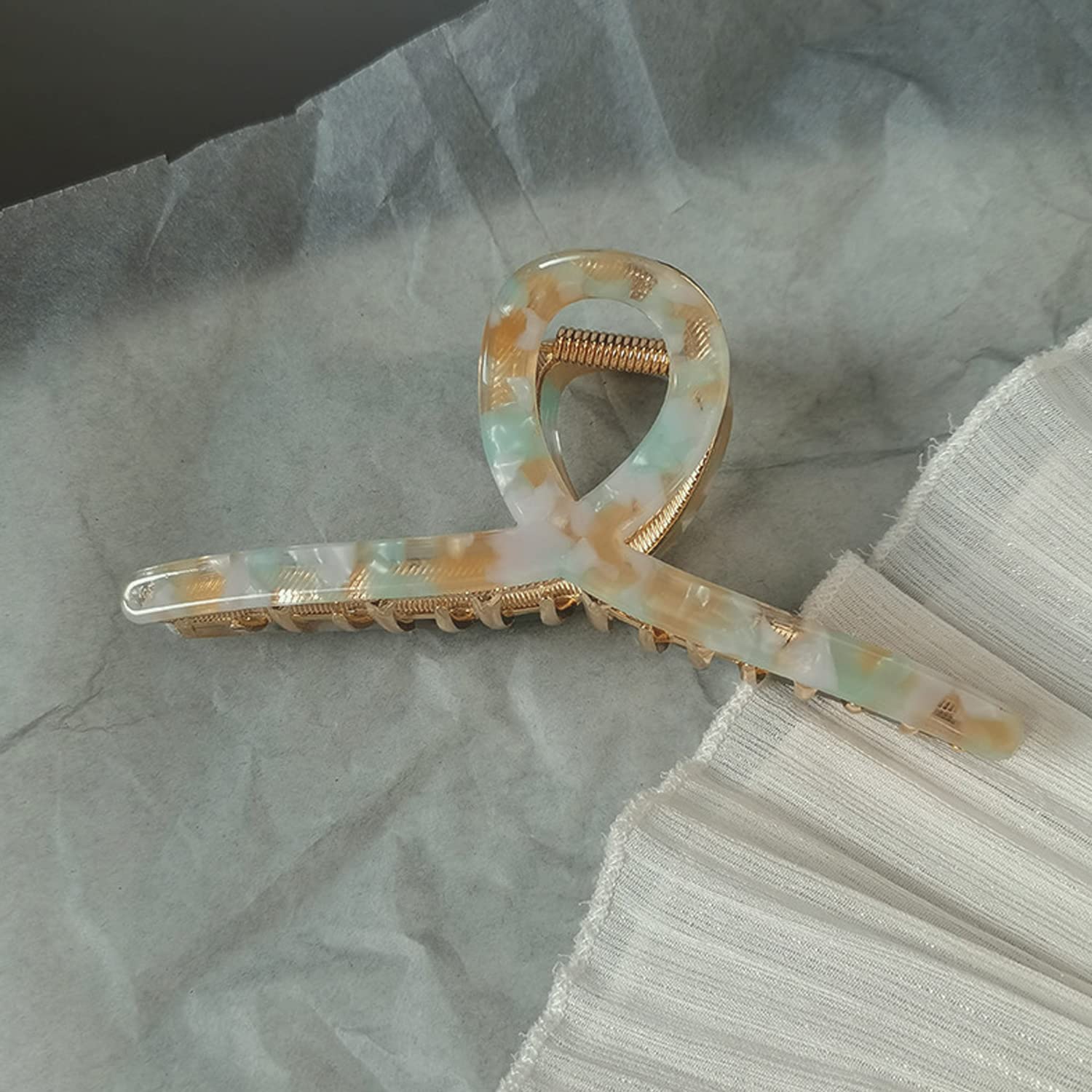 1Pack Large Metal Acetate Hair Claw Clips for Thick Thin Hair Non Slip Big Fashion Hair Clamp for Women Girls Hair Styling Accessories as Gift for Wife Girlfriend (1PC/Box,Green White)