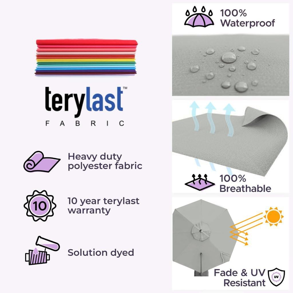- [ WARRANTY ]: 10 year warranty on the Midtown 10 ft umbrella outdoor patio frame along with 10 year warranty on the Terylast fabric.