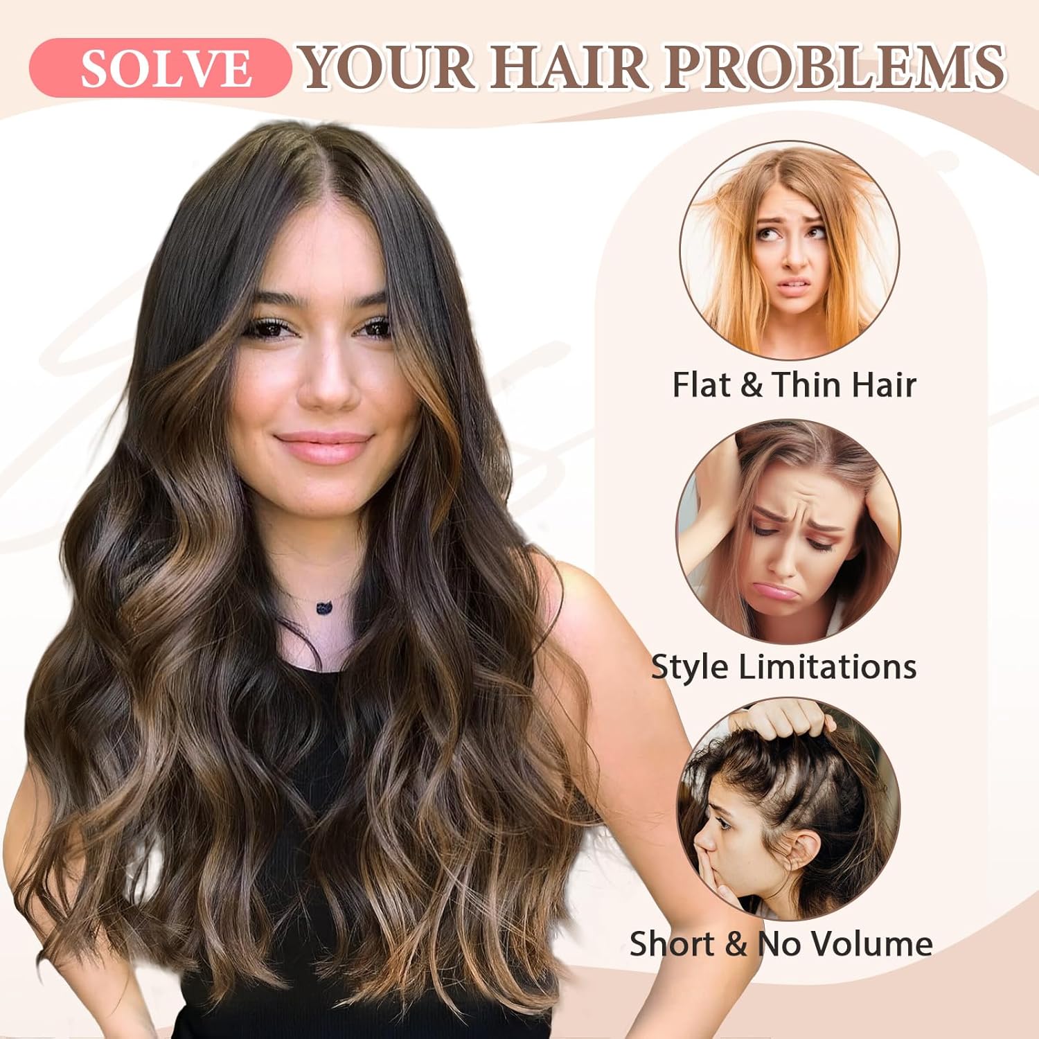 - ✅SOFT AND REALISTIC APPEARANCE – These 20-inch Synthetic fibers with natural shine blend smoothly with your hair. The 6PCS set weighs 220g, suitable for most, but if it feels heavy, simply wear fewer pieces for comfort.