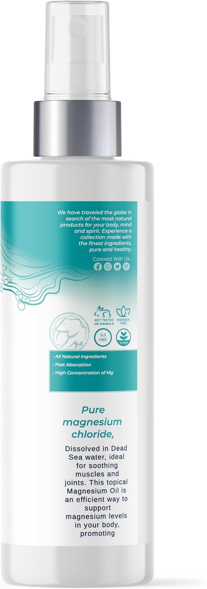 - Natural Support for Muscle and Joint Comfort: Derived from mineral-rich Dead Sea water, our magnesium oil is crafted to promote a sense of comfort and well-being, free from added fillers or impurities.