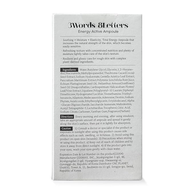 [3W8L] Energy Active Serum 1.69 fl oz | Vegan Face Ampoule For All Skin Types | Soothing & Moisturizing Face Serum | Korean Skin Care | k-beauty | 3Words 8Letters