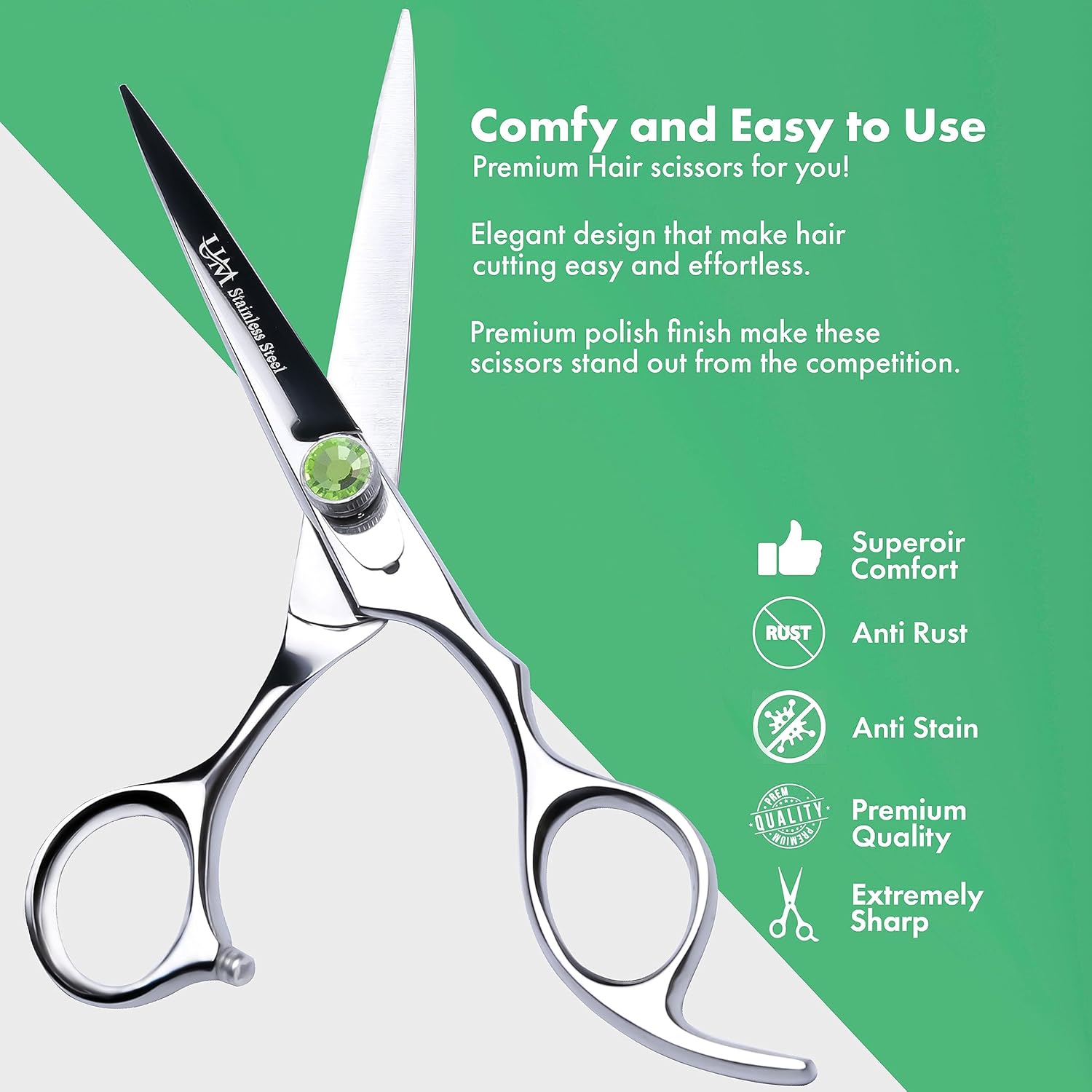 UM Supplies Scissors 6.5 | Premium Barber Shears For Hair Cutting | Multiple Purpose Cutting Scissors | Haircut Scissors For Salon I Women | Mens | kids I Pets | Silver-Green