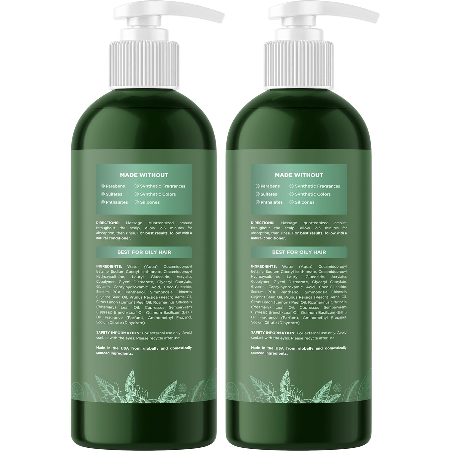 Clarifying Shampoo for Oily Hair and Scalp - Deep Cleansing Shampoo Build Up Remover with Rosemary Oil - Degrease Shampoo for Greasy Hair & Scalp - Vegan Color Safe Sulfate & Paraben Free (2 Pack)