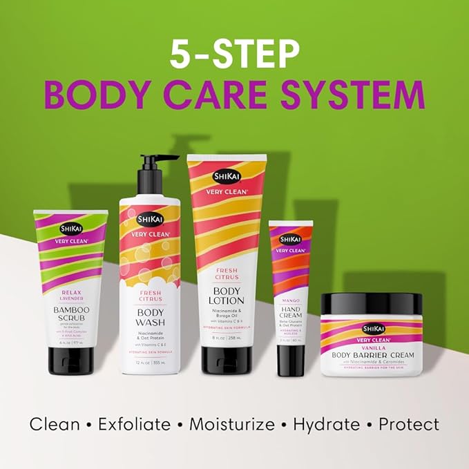 ShiKai Very Clean Bamboo Body Scrub (Relax Lavender, 6 oz) | Gentle Hydrating & Exfoliating Skin Cleanser | With 5 Fruit Complex & AHA Acids