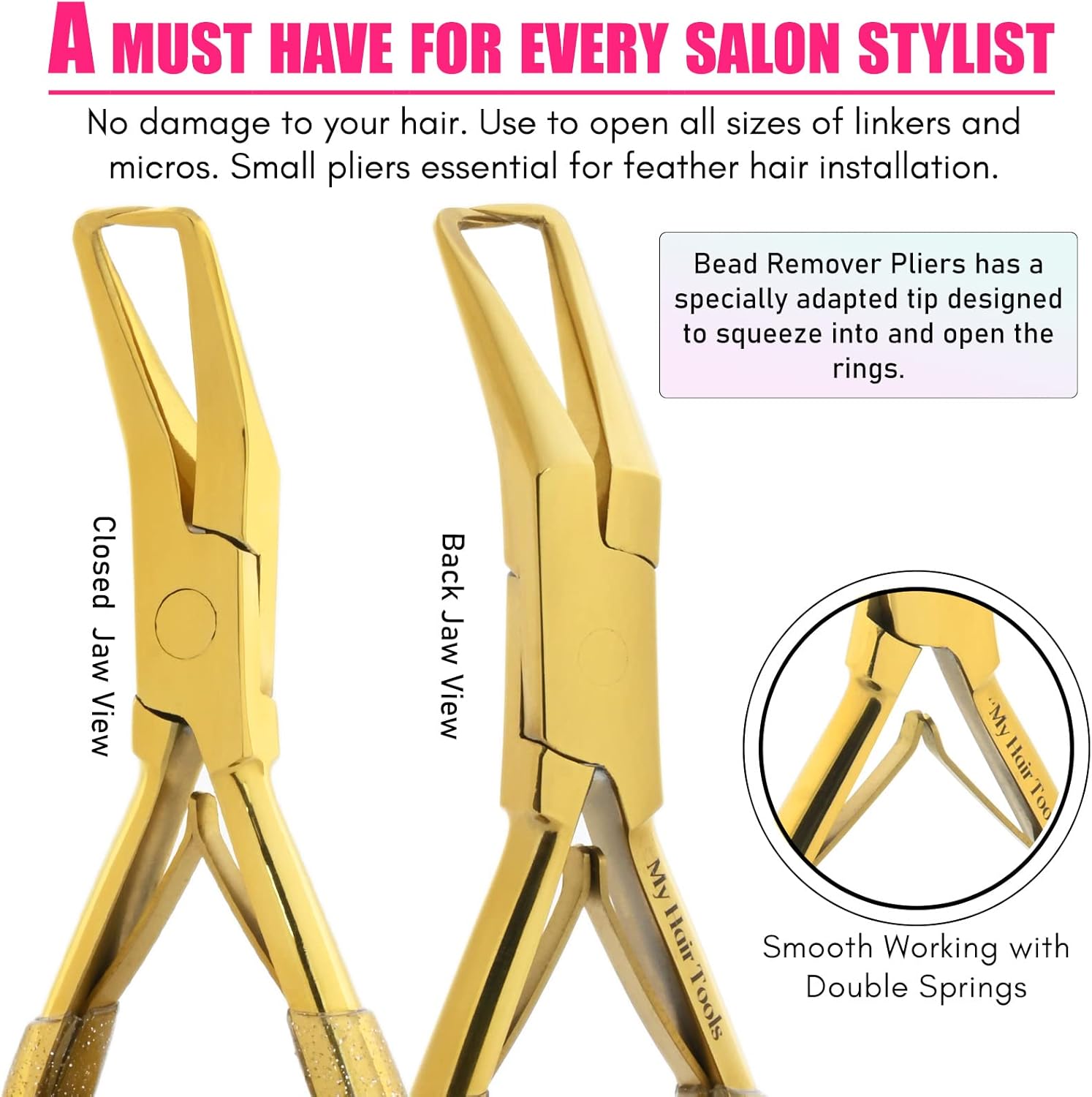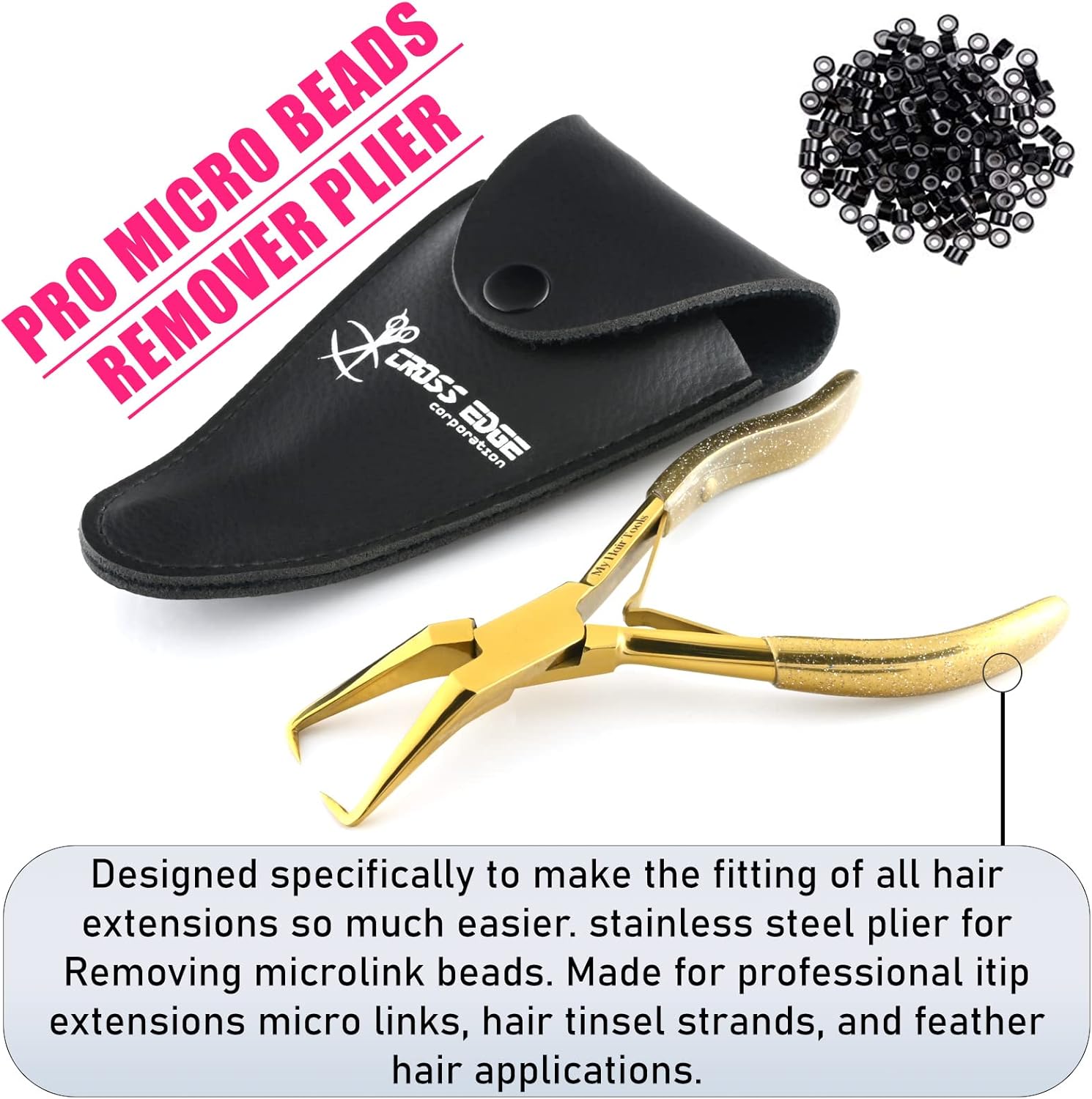 Professional Hair Extension Tools Microlink Bead Remover Plier for Hair Extensions Removal Micro Ring Beads Opener 5.5 Inch Pliers Silver Polish Stainless Steel โ Cross Edge Corporation (Gold)
