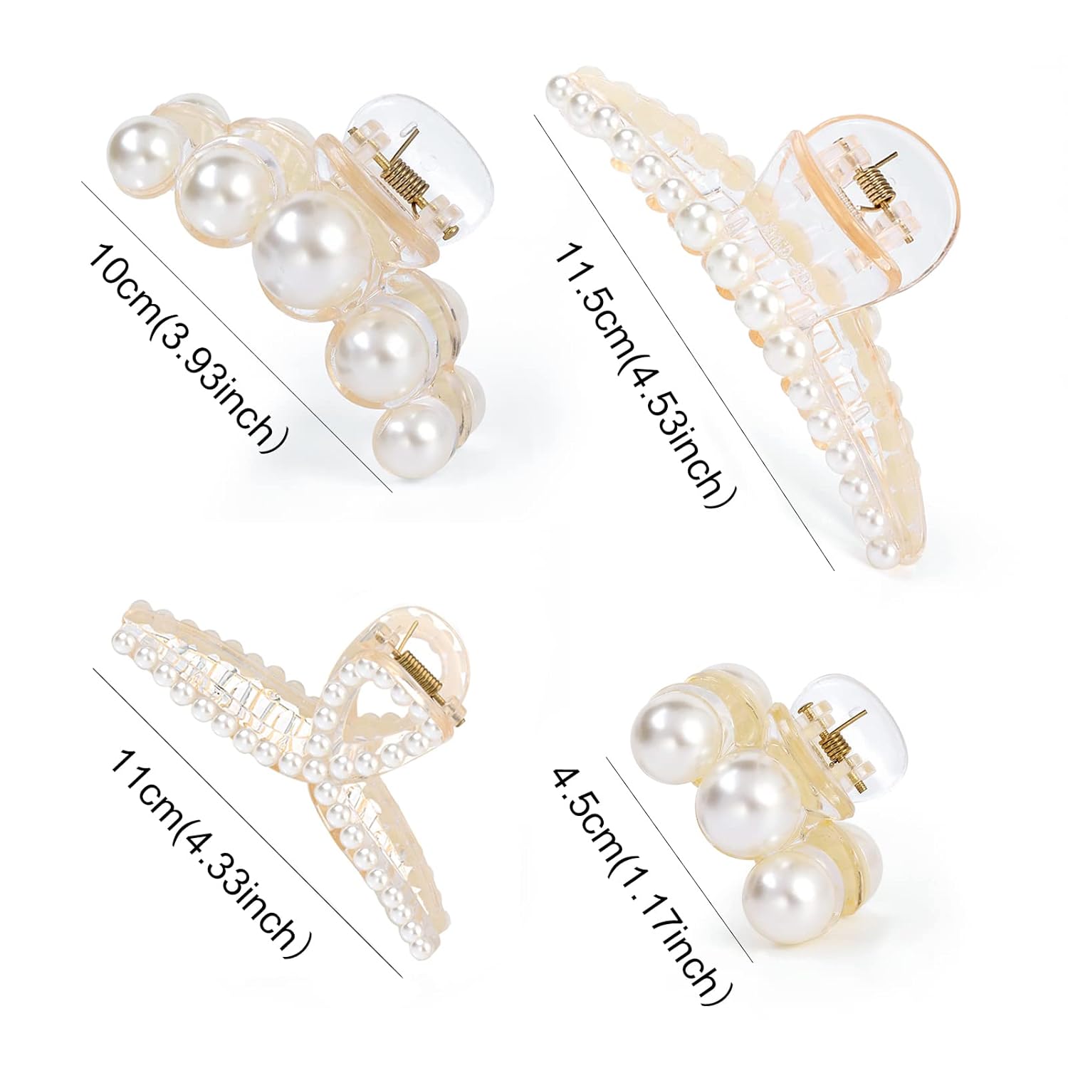 - 【What You Get】 4 pieces claw clips in 1 set which are made of high-quality pearl and resin, each one is durable and will not harm your hair. They can hold your hair firmly, are not easy to damage, and will not fade.