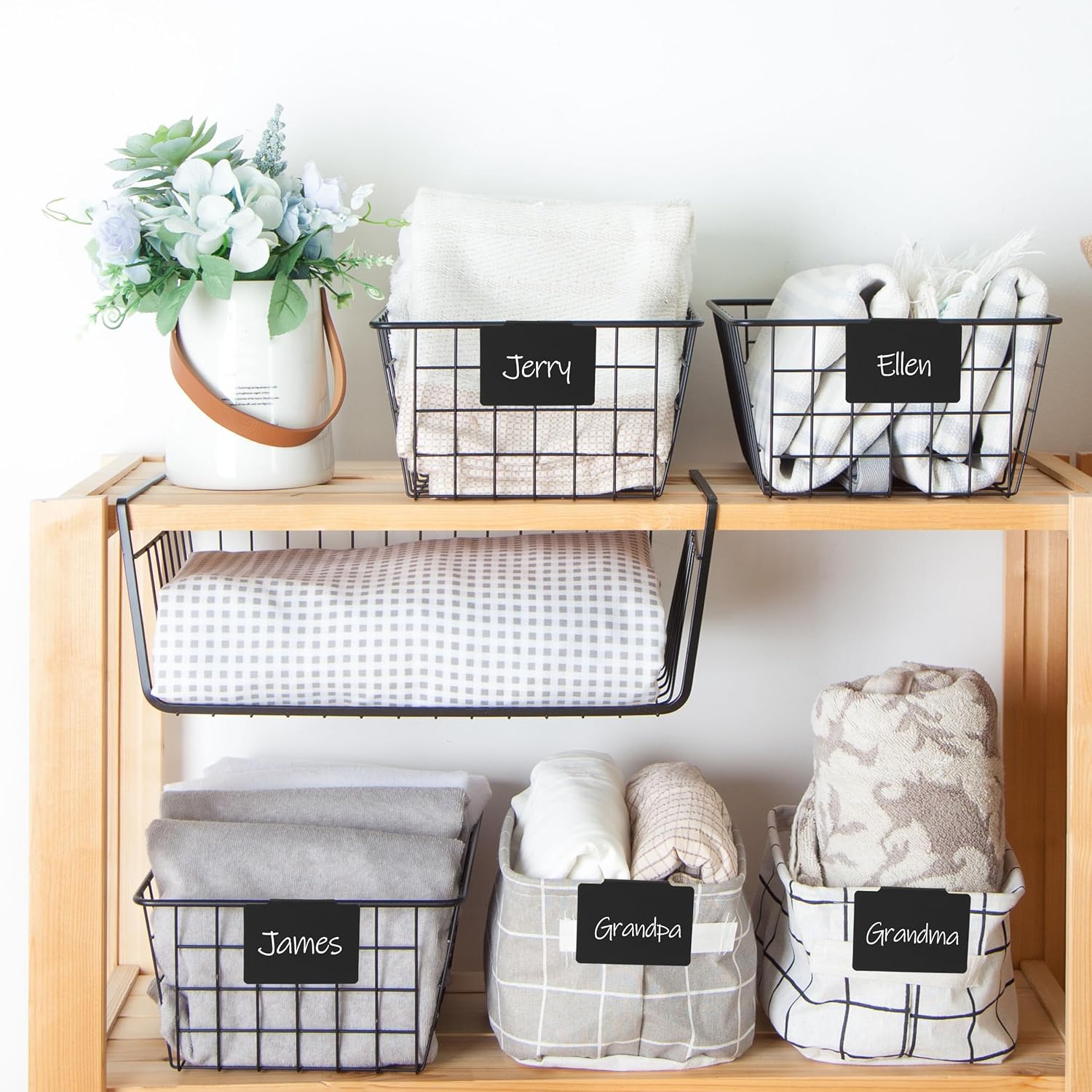 - Our black label clips are the perfect canvas for the included white chalk markers, offering high-contrast visibility for easy reading and a stylish aesthetic that complements any space.