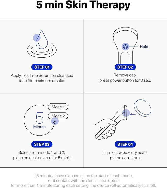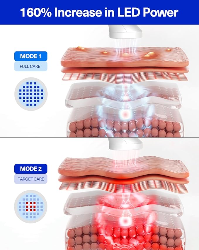 - ๐ต DUAL THERAPY MODES : Rejuvenating Mode has 625~850nm long red light beams to boost anti-aging properties, while Intensive Care Mode has 415nm long rays to improve concerns acne + prevent breakouts along with red + ir lights.