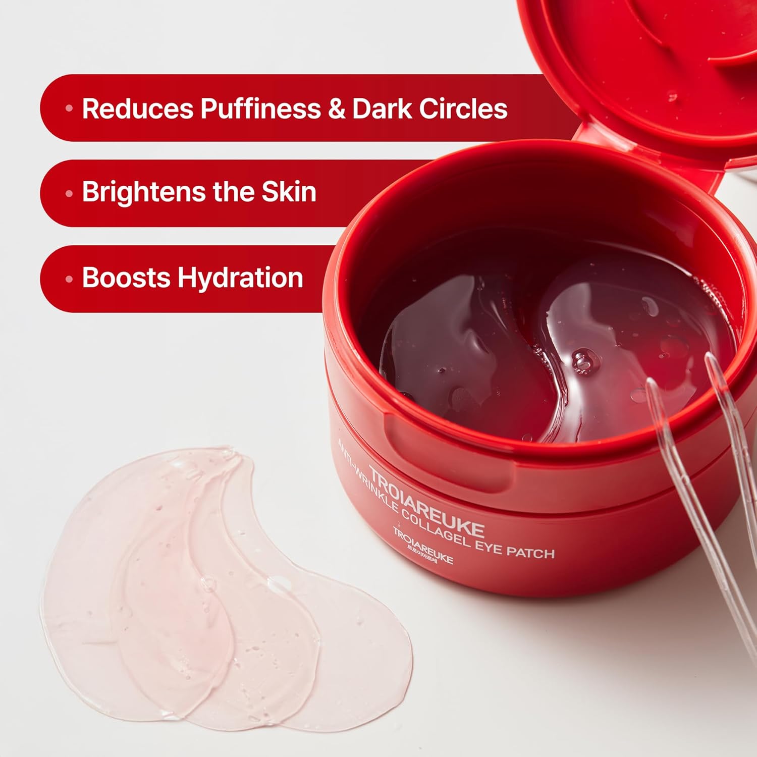 TROIAREUKE Anti-Wrinkle Collagel Eye Patch,Smooths eye,forehead,facial wrinkles,Reduces puffiness & Dark circles,Hydrogel Wrinkle patches,Elastic,adhesive formulation (60Count)