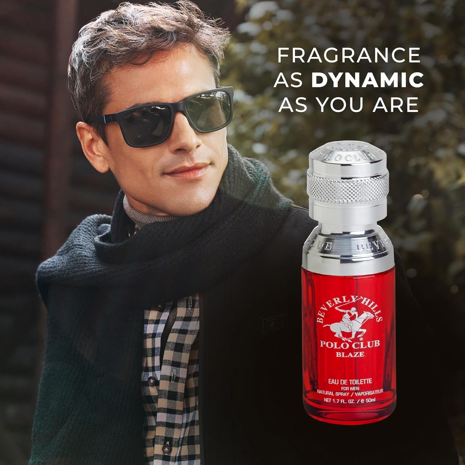 Beverly Hills Polo Club BHPC Men's Eau De Toilette Bonus Pack | Blaze Scent | 1.7oz EDT + Travel Pocket Spray | Long-Lasting Masculine Fragrance