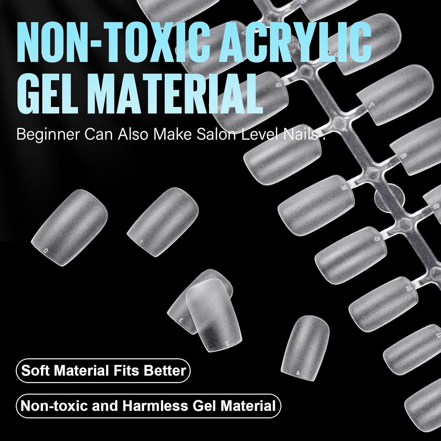 - 【Resistant to breakage】 TOMICCA nail tips are made of traceless acrylic material, which is not easy to break and peel off, thin and tough, nontoxic and tasteless, no harm to nails. The pre-shaped nail design also greatly saves the time of polishing the nail’s shape, making the nail art process easier and comfortable. Long Last 21 days with proper application.