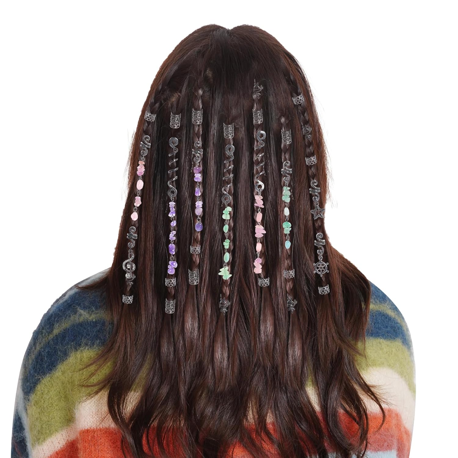 - Wide-used hair charms: These chic hippie hair accessories are suitable for all ages, great for daily, rave, music concerts, parties, weddings, photo shoots, proms, goth or pirate hair decoration and more, and can be used for a variety of hairstyles, such as braids, dreadlocks, twists, ponytails and so on