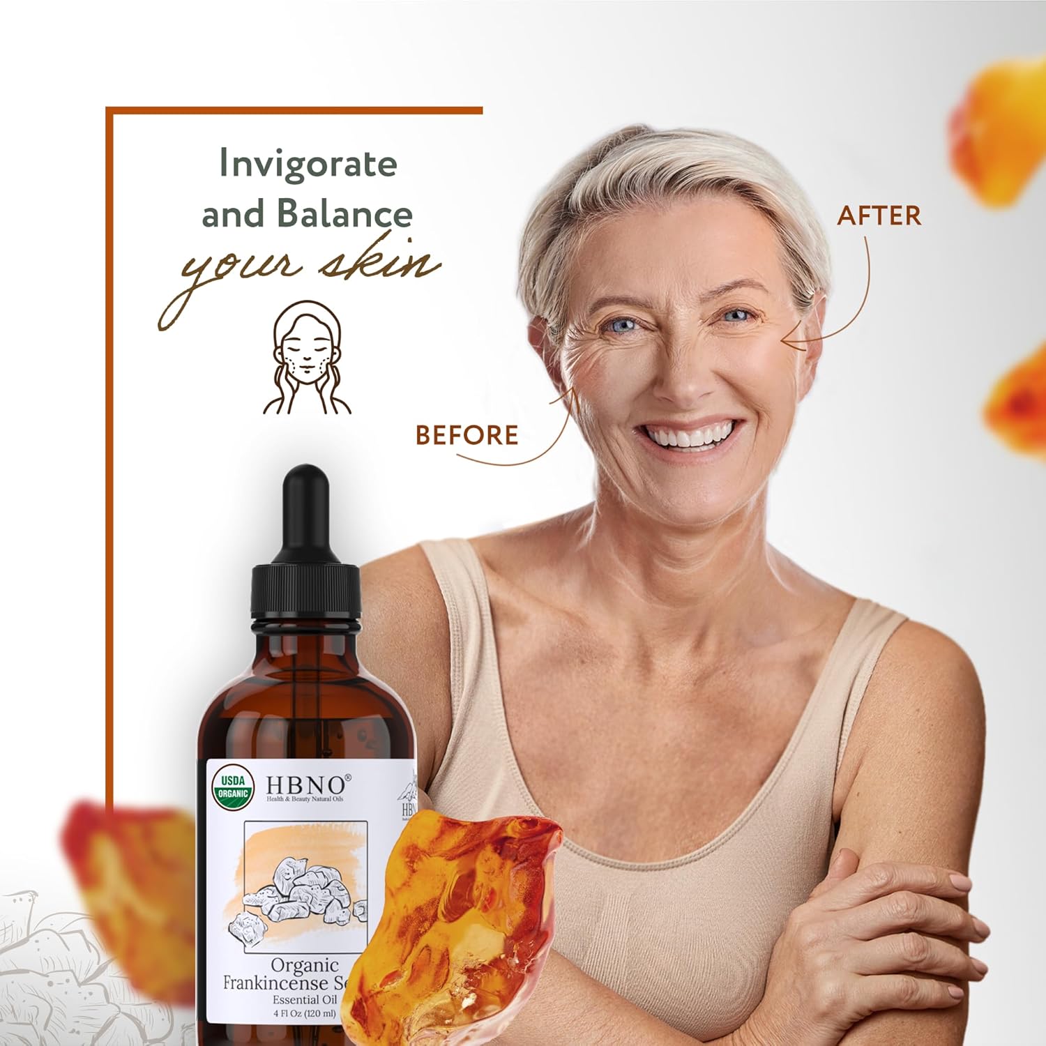 HBNO California Bottled Organic Frankincense Essential Oil 4 fl oz (120ml) - USDA Certified Oil - Organic Frankincense Essential Oil for Skin and Aromtherapy