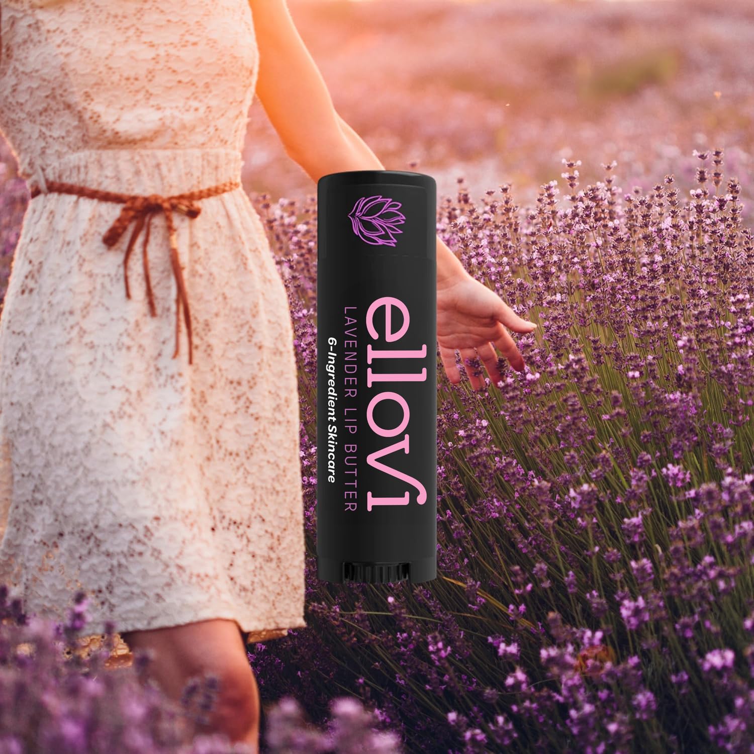 Ellovi Natural Lip Butter Lip Balm - Lavender - Pure Enough to Eat - Made With Just 6 Vegan Ingredients - 100% Natural & Organic Moisturizing Lip Care for All Day Hydration (Single)