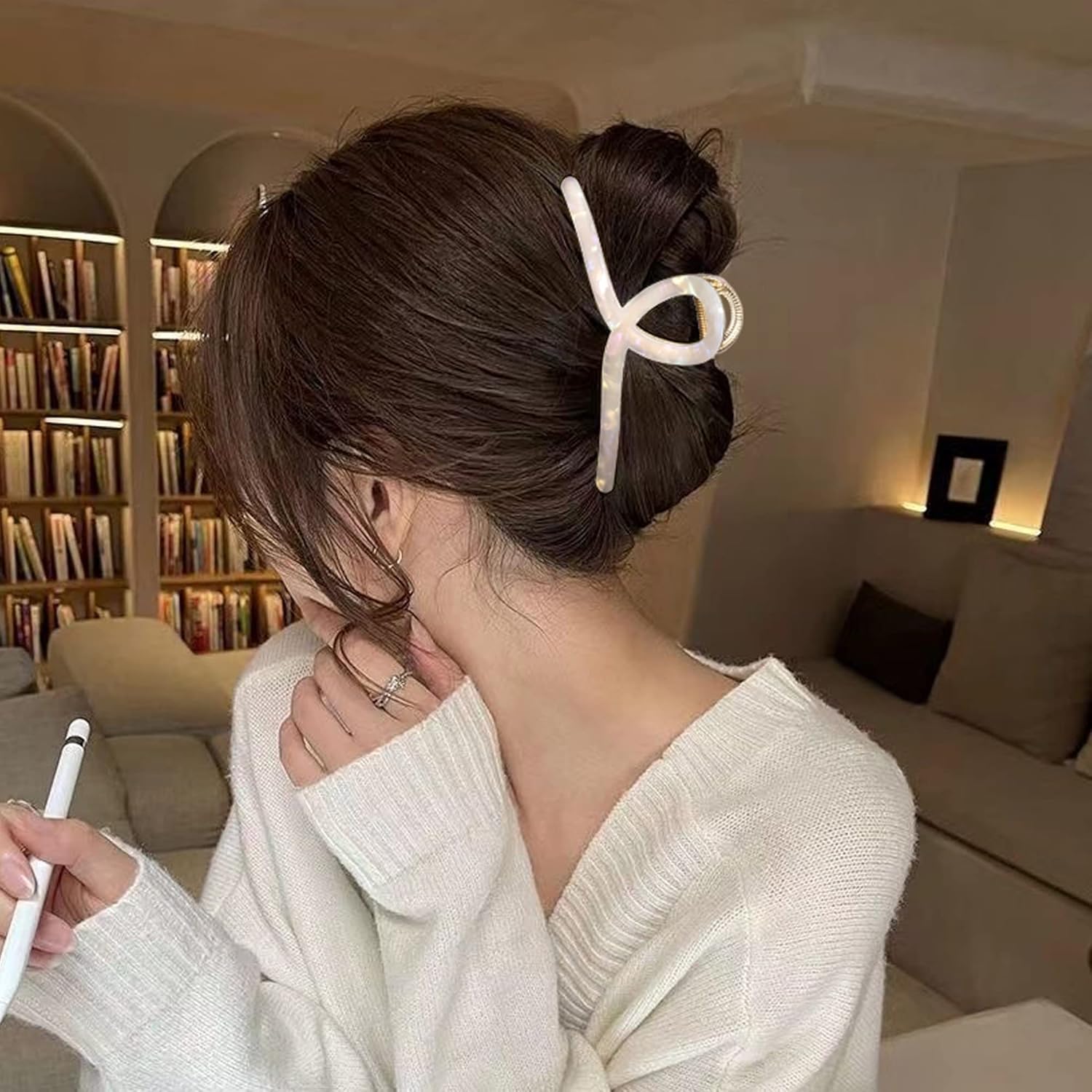 Big Butterfly Metal & Acetate Hair Clamps for Women and Girls - 4.7" Large Hair Accessories with Strong Hold for Long, Thick Hair (Pearly White, 1 Pc)