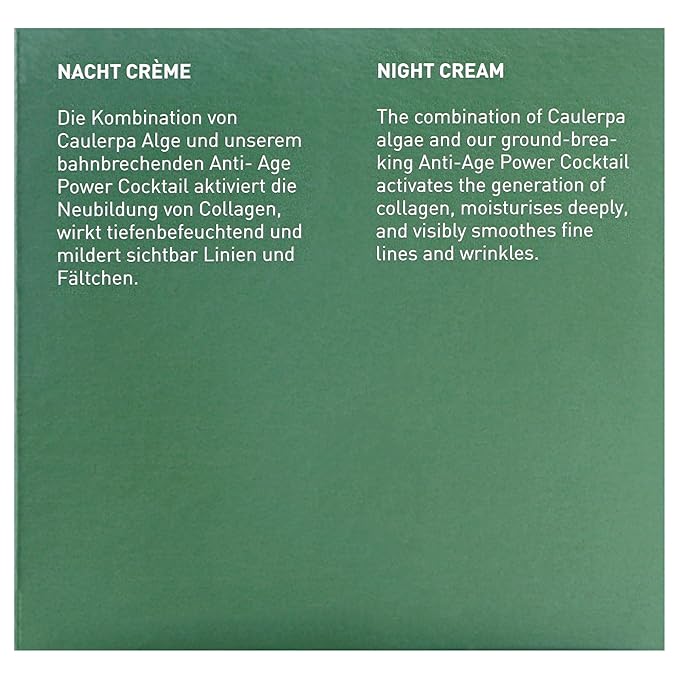 - Nourishing Ingredients: Formulated with Green Caviar Algae, Aloe Vera, and Argan Oil, this anti wrinkle face cream deeply nourishes and hydrates. It's the ultimate facial moisturizer seeking a luxurious, nutrient-rich night cream.